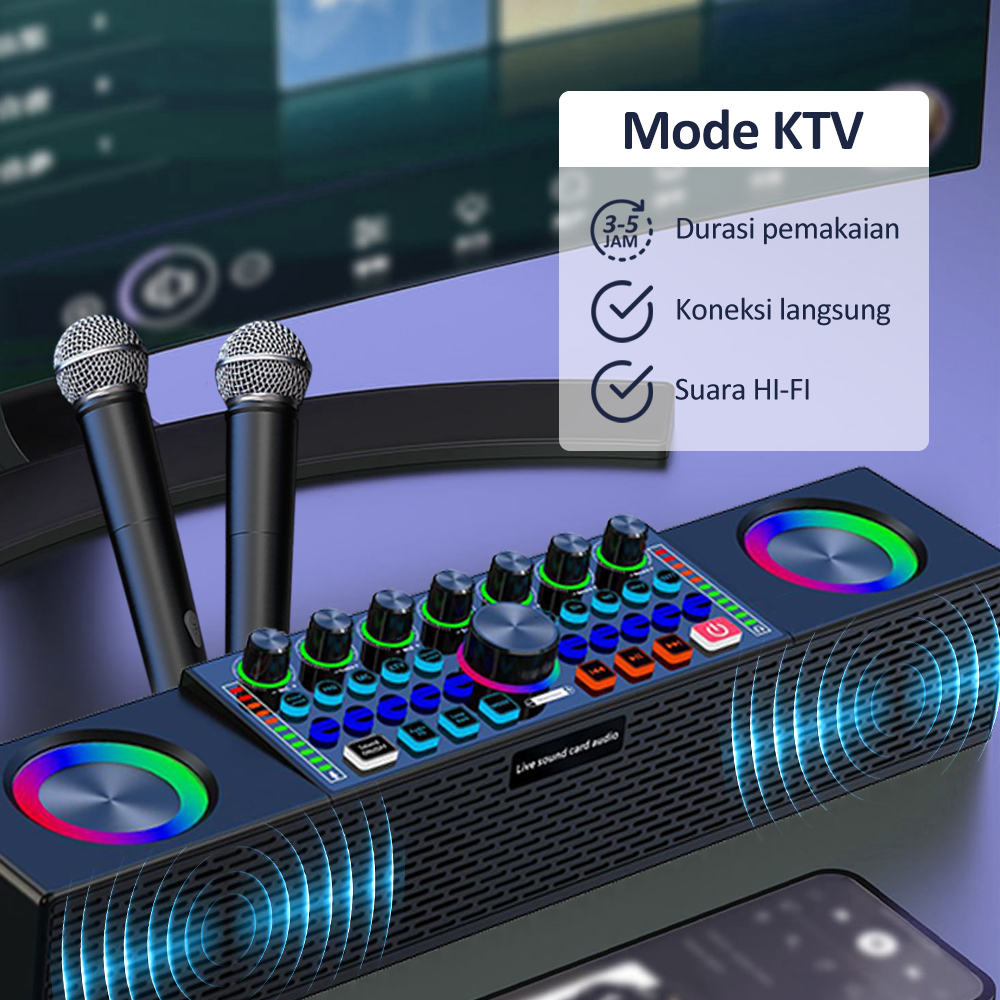 Sound Card Sy6 Bluetooth Speaker All-In-One + Two Wireless Microphone Soundcard Singing Karaoke