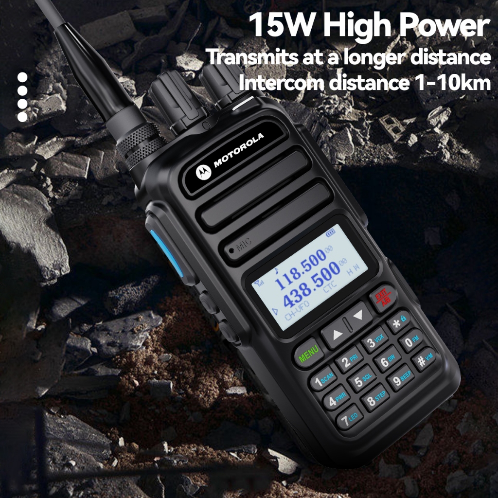 K Headset Ht Motorola 370S Walkie Talkie High-Power Radio 15W 128Ch 1-20Km Dual-Frequency Handheld Fm Digital Two Way Ra