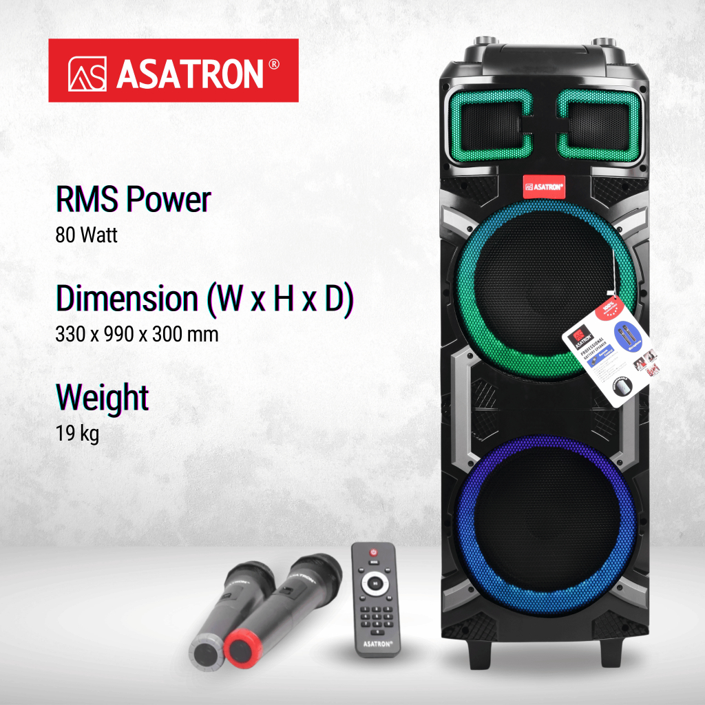 Asatron Ultimate Dual 10 Inch Bluetooth Wooden Box Party Speaker with 2 Wireless Mic