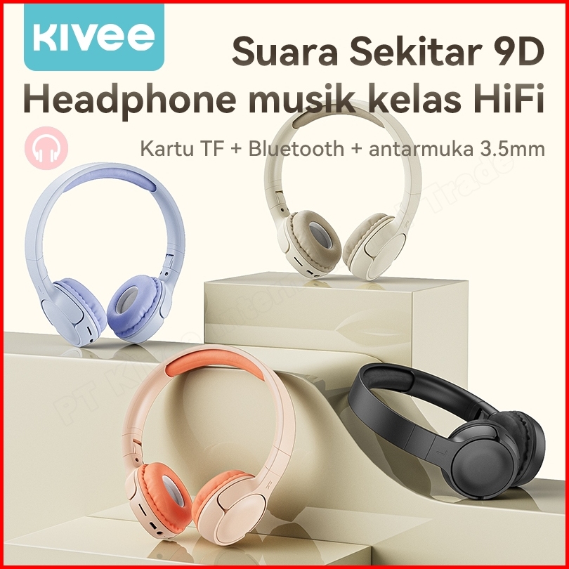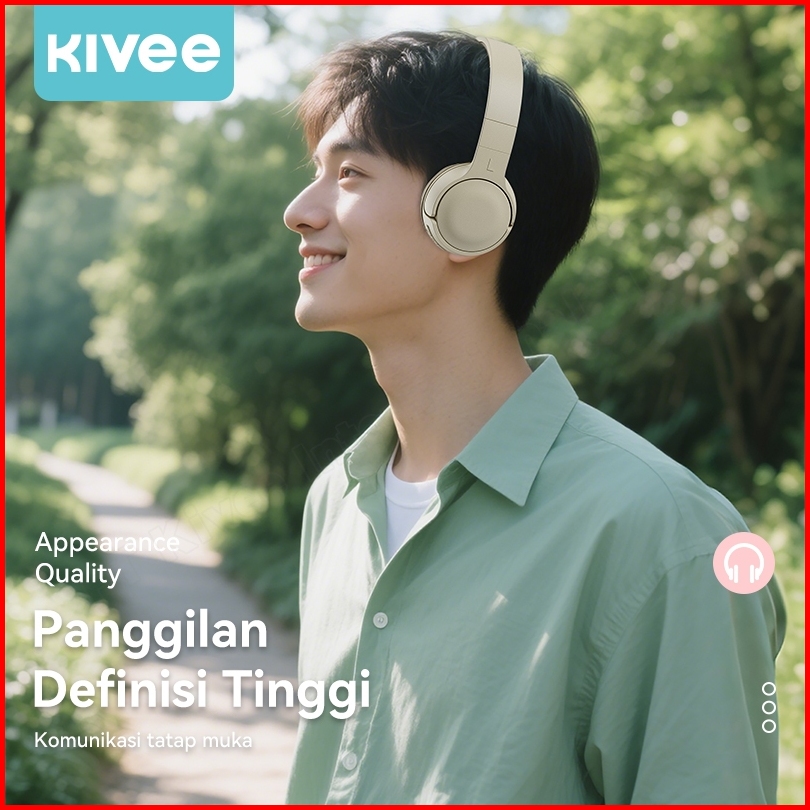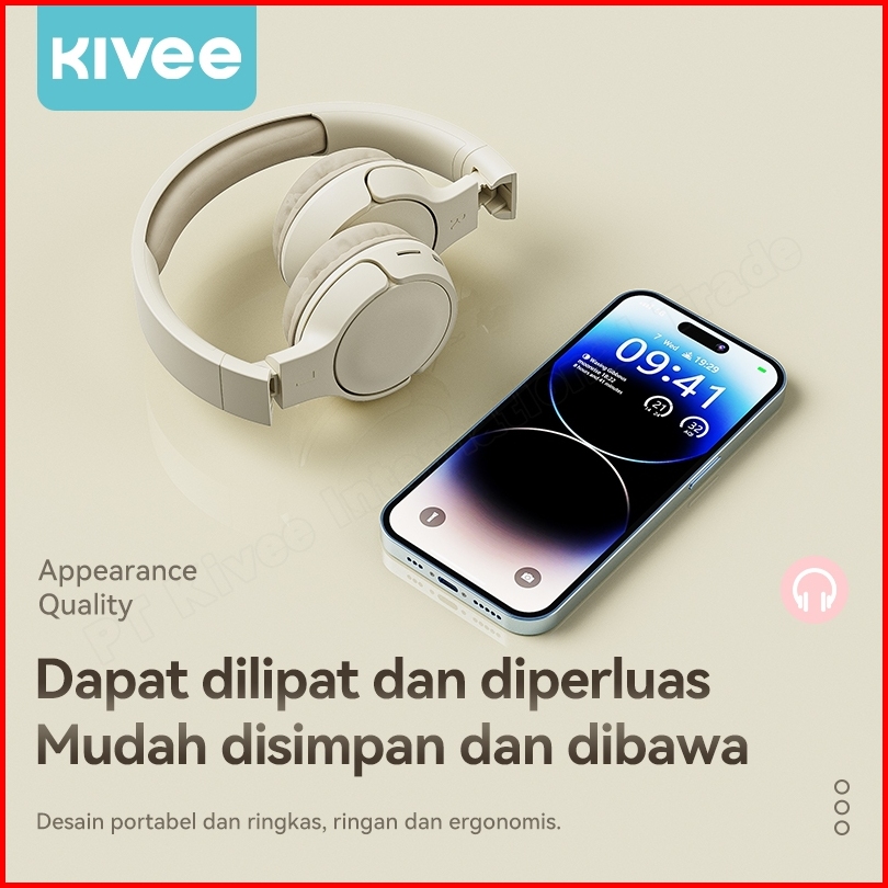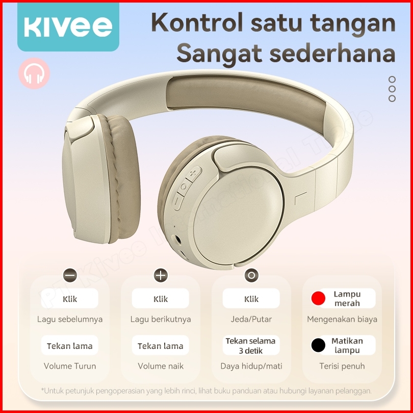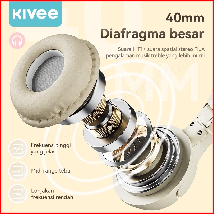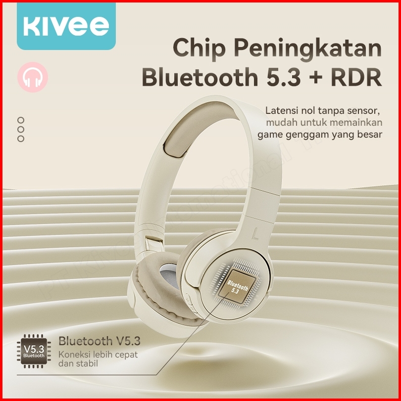 Kivee Headphone Wireless Bluetooth 5.3 Kv-tw143 Krem Headset Music Gaming 6d Hifi Makaron Original