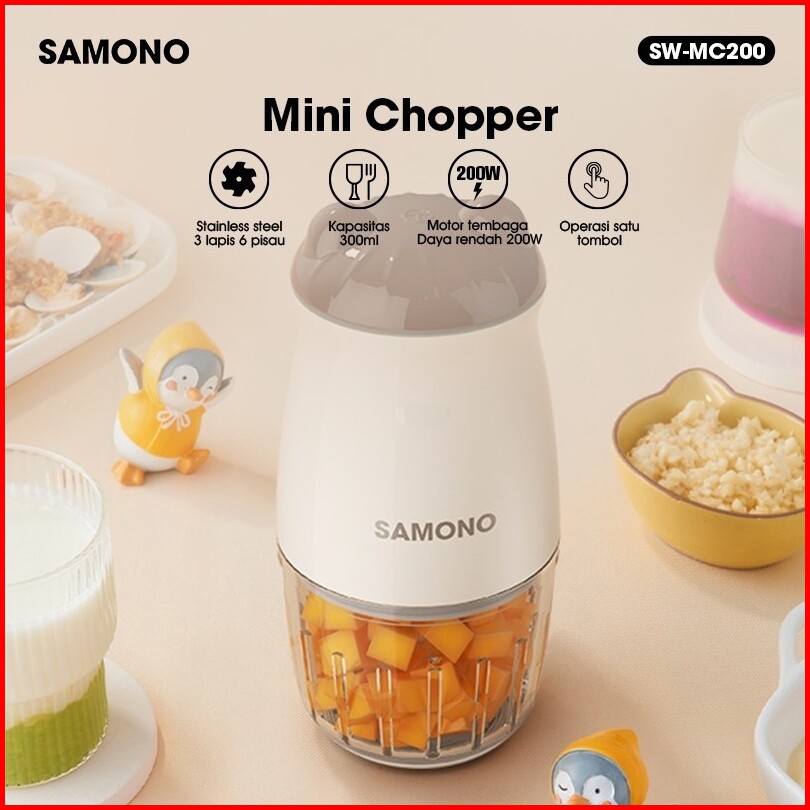 Samono Food Chopper Beige Wadah Kaca 300ml 200watt Penggiling Daging Bumbu Mpasi Sw-mc200 Garansi 1 Tahun
