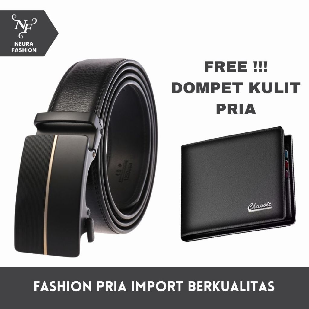 BONUS DOMPET Ikat Pinggang Pria Panjang 120cm Model Rel Kepala Metal Ikat Pinggang Pria Model Import