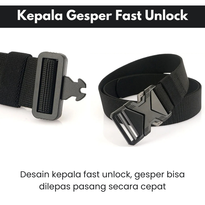 Ikat Pinggang Pria Tactical Nilon Canvas X Fast Unlock Kepala Besi Gesper Sabuk Cowok Military Belt