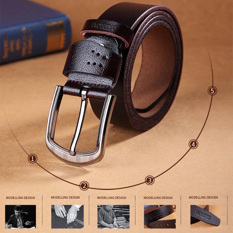 AOKEYO Ikat Pinggang Pria Kulit Sabuk Pria Kulit Sapi Asli Gesper Pria (Free Kotak+ Kartu Garansi)