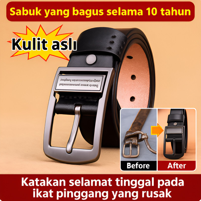 【】 Sabuk Gesper Pin Kulit Asli Pria/ Tahan Lama Sabuk Pria Ukuran Besar/Sabuk Gesper Pin Kulit Sapi Murni Lapisan Pert
