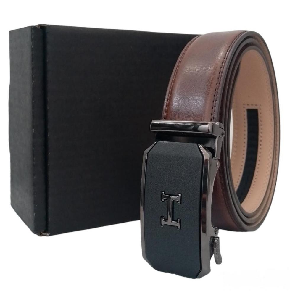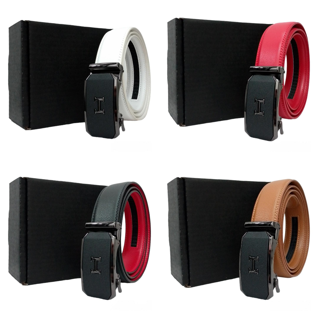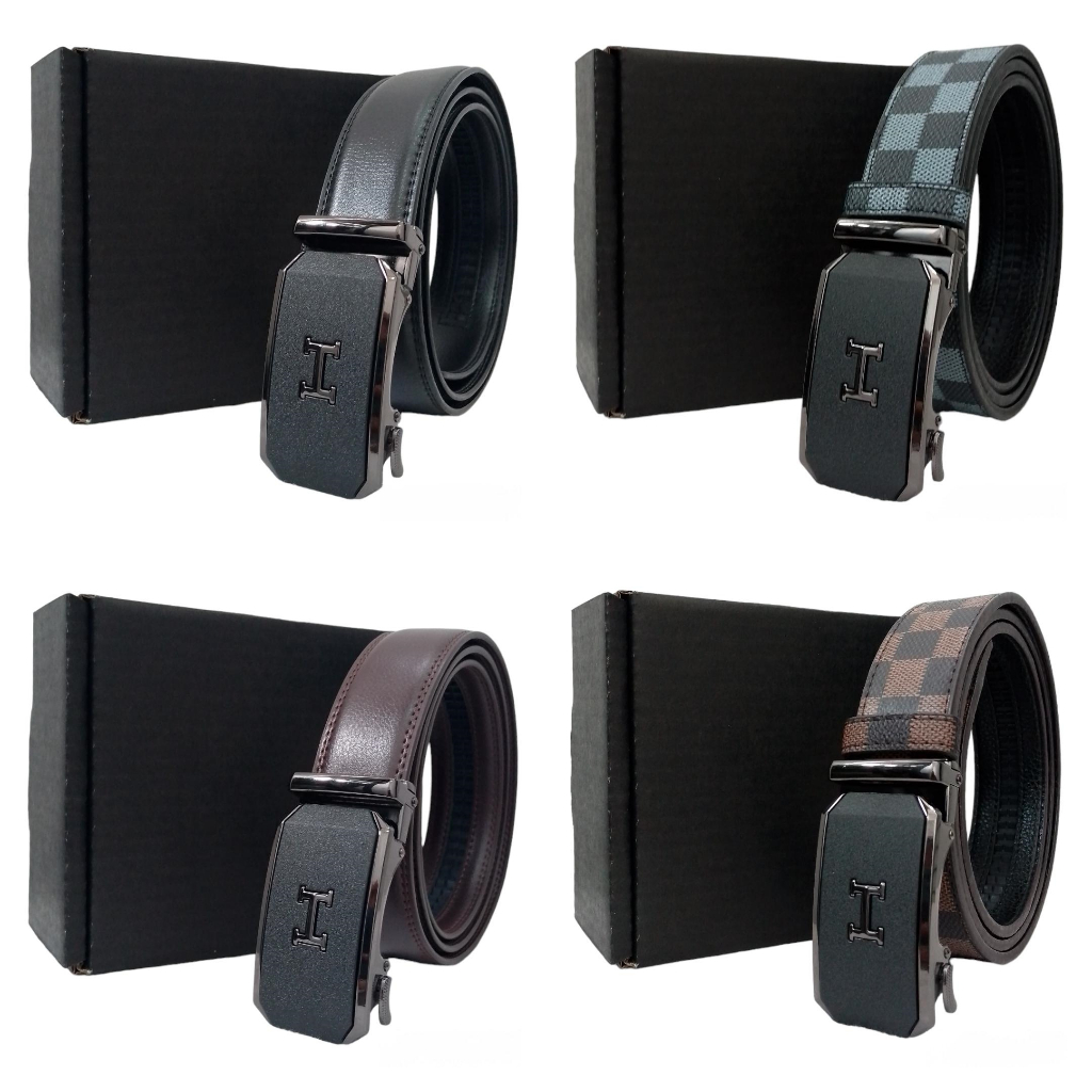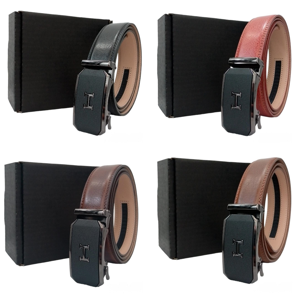 KULIT ASLI GENUINE LEATHER Ikat pinggang pria laki cowok model rel otomatis ada dus box hitam GH-1