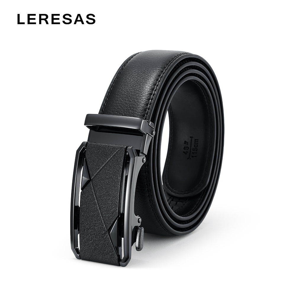 LERESAS Sabuk Pinggang Gesper Otomatis Ikat Pinggang Pria Kulit Sapi Asli Dapat Disesuaikan Belt Pria P011