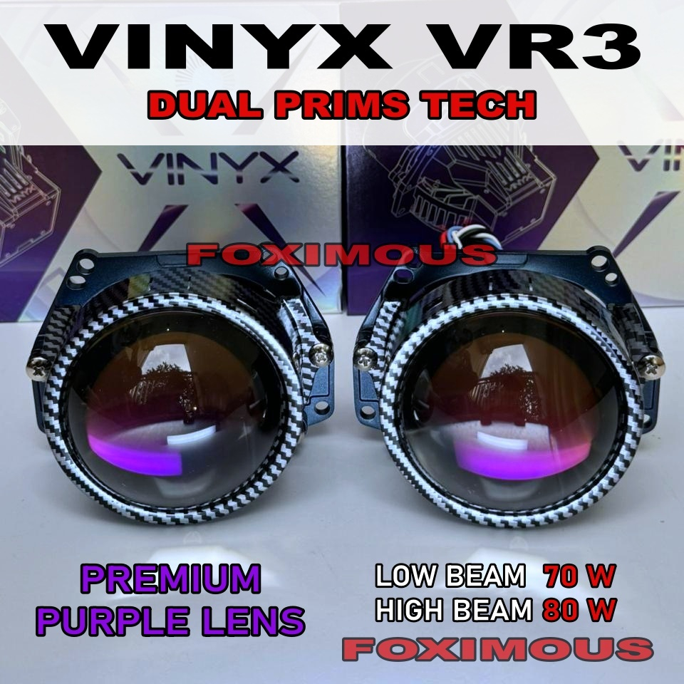 Biled Projector Lens Vinyx VR3 3 inchi Purple Lens Dual Prims Technology 80 Watt Body Carbon