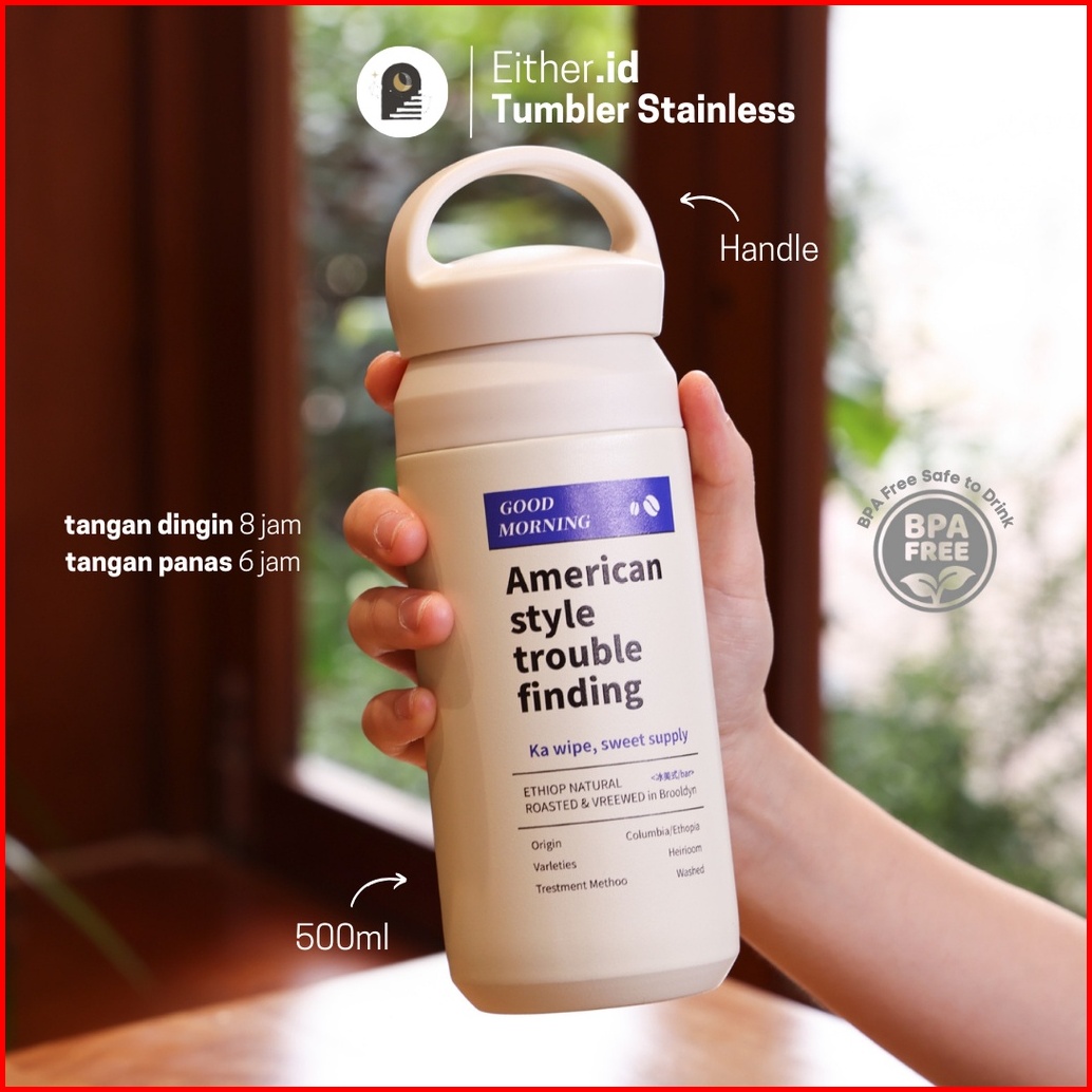 Either.id - Stainless Steel Tumbler Cup Stainless Steel Portabel Botol Minum Aesthetic Termos Portable Tumbler Minum