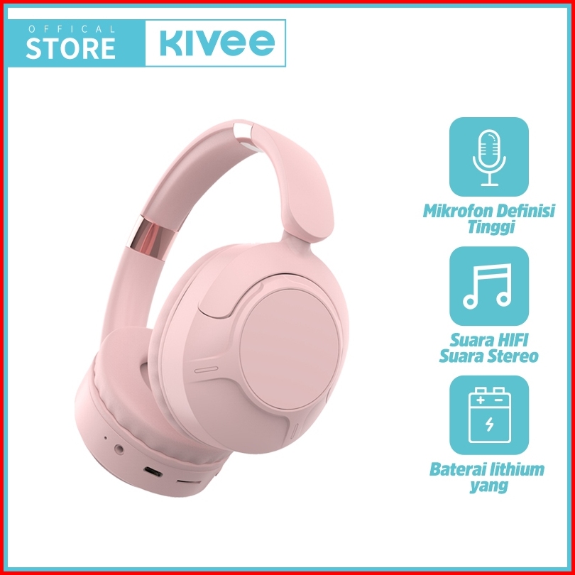 Kivee Headphone Wireless Bluetooth 5.3 Kv-tw152 Pink Headset Music Gaming Hifi 9d Hifi Original