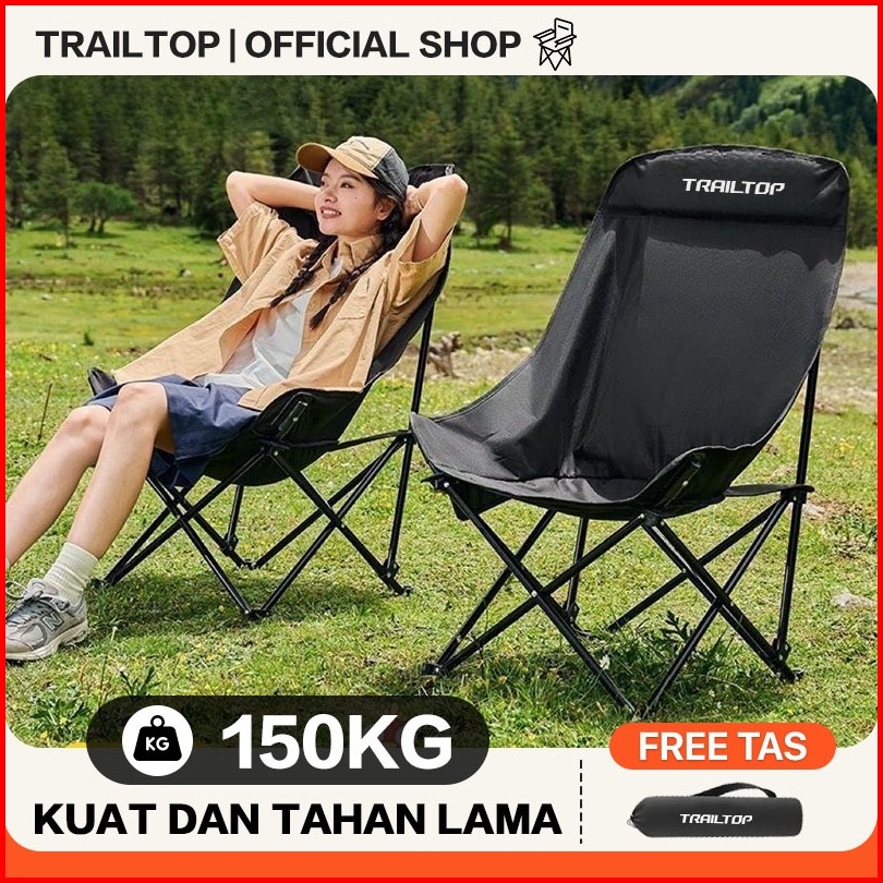 Trailtop Kursi Lipat Outdoor Sandaran Tinggl Dengan Kepala Busa Tebal Kursi Lipat Camping Beban 150kg