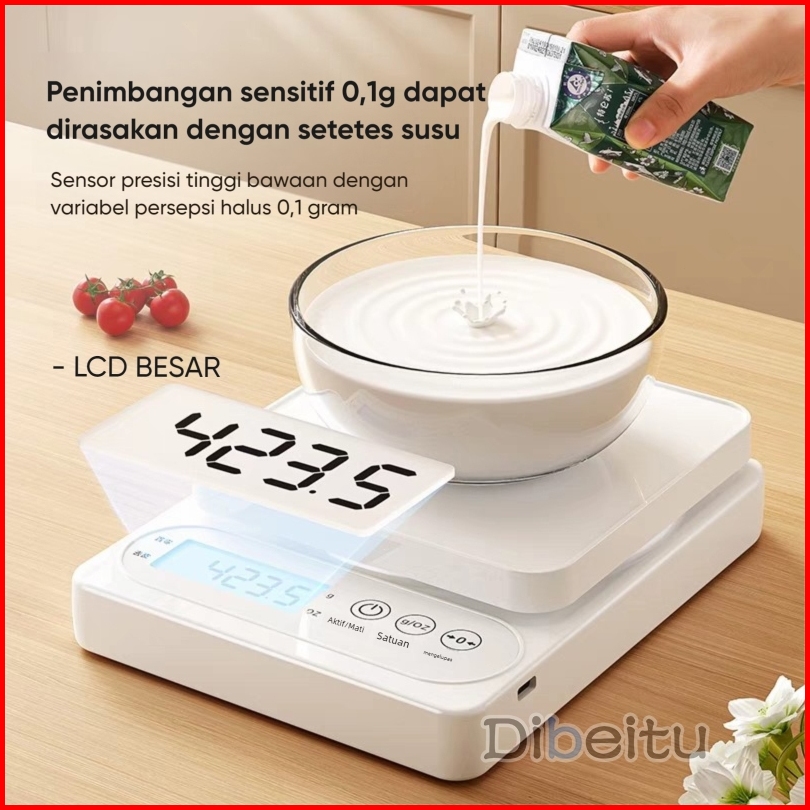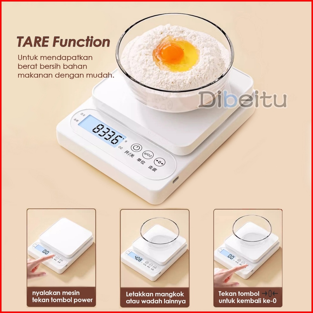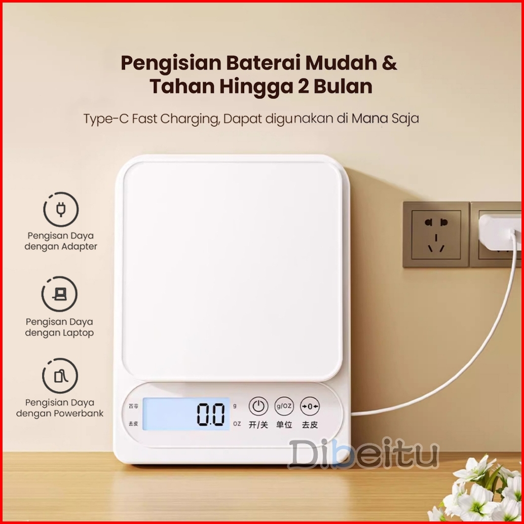 Timbangan Digital 5kg 10kg Timbang Makanan Bumbu Kopi Kue Bahan Dapur Akurat 0.1g Usb Type-c