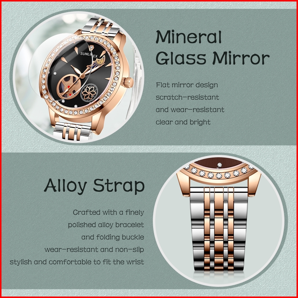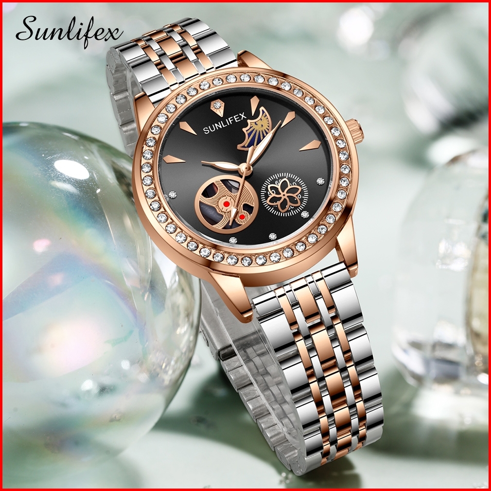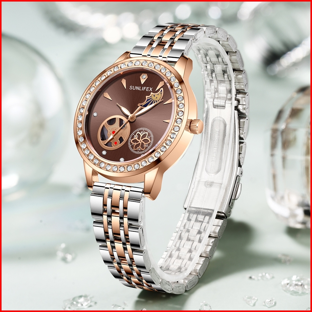 Sunlifex Jam Tangan Wanita E055 Korea Mewah Kuarsa Bercahaya Tali Paduan Jam Tangan Cewek Original