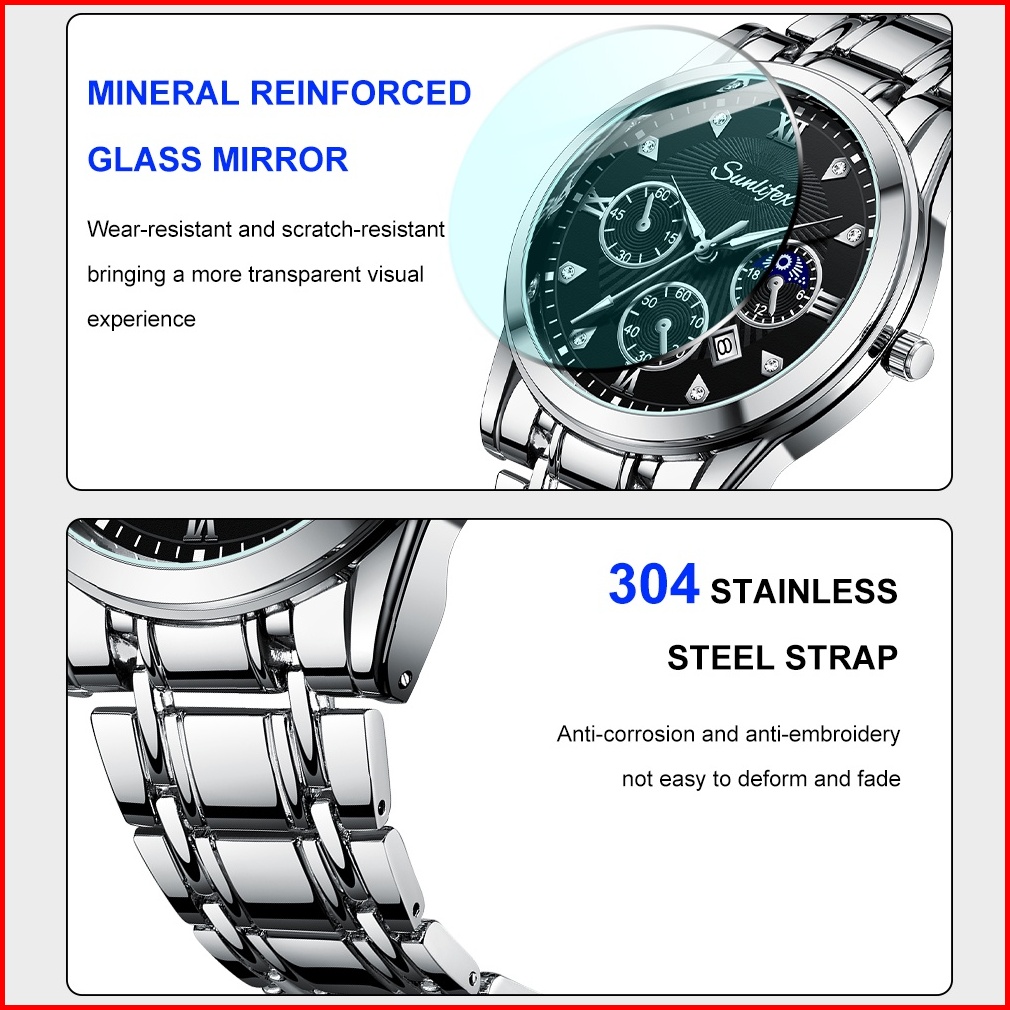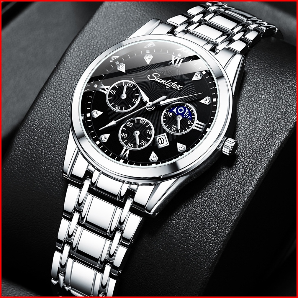 Sunlifex Jam Tangan Pria 9004a Original Mode Santai Pria Anti Air Kuarsa Tali Stainless Steel Jam Tangan Cowok
