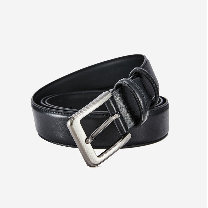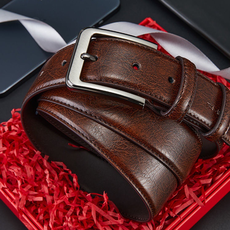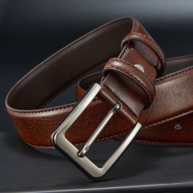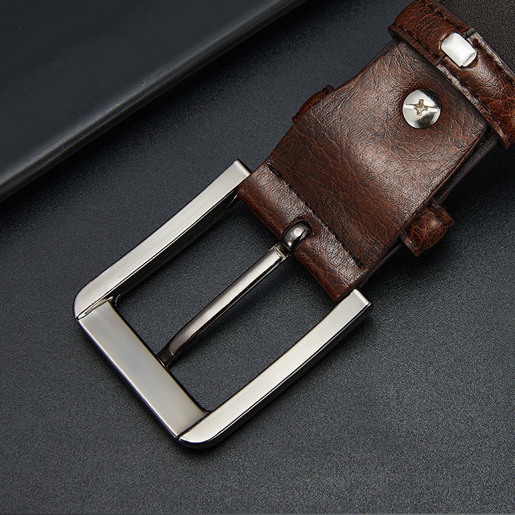 BGS-079-Ikat Pinggang Pria Gaya Kancing Pin Klasik Sederhana Fashion, Kulit Sapi 2 Lapisan
