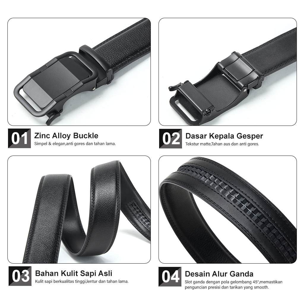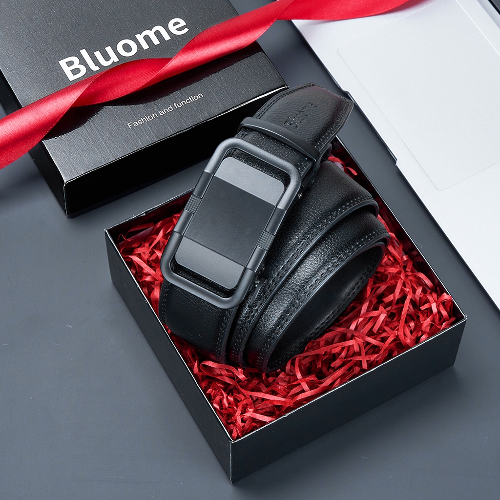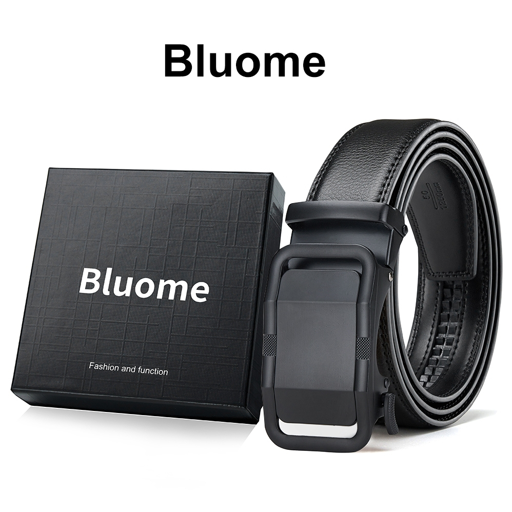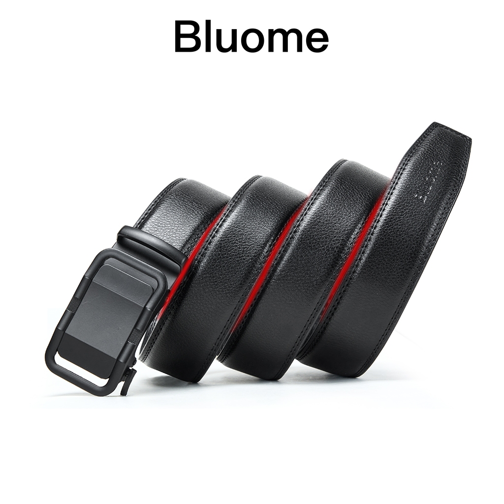 Bluome Sabuk Pria Keren Ikat Pinggang Kulit Sapi Asli Gesper Model Rel Otomatis Men Belt Fashion
