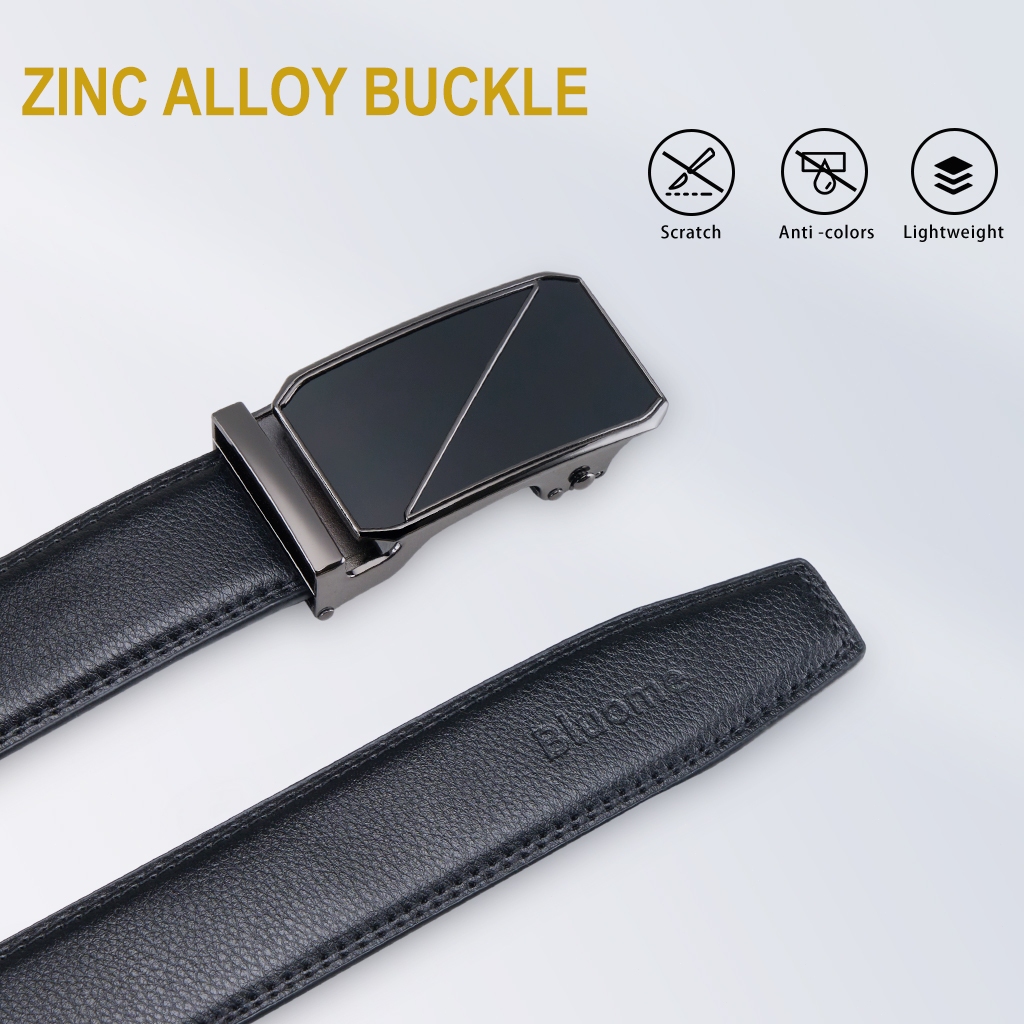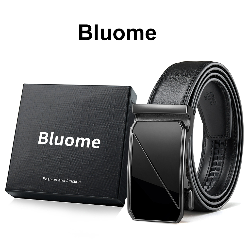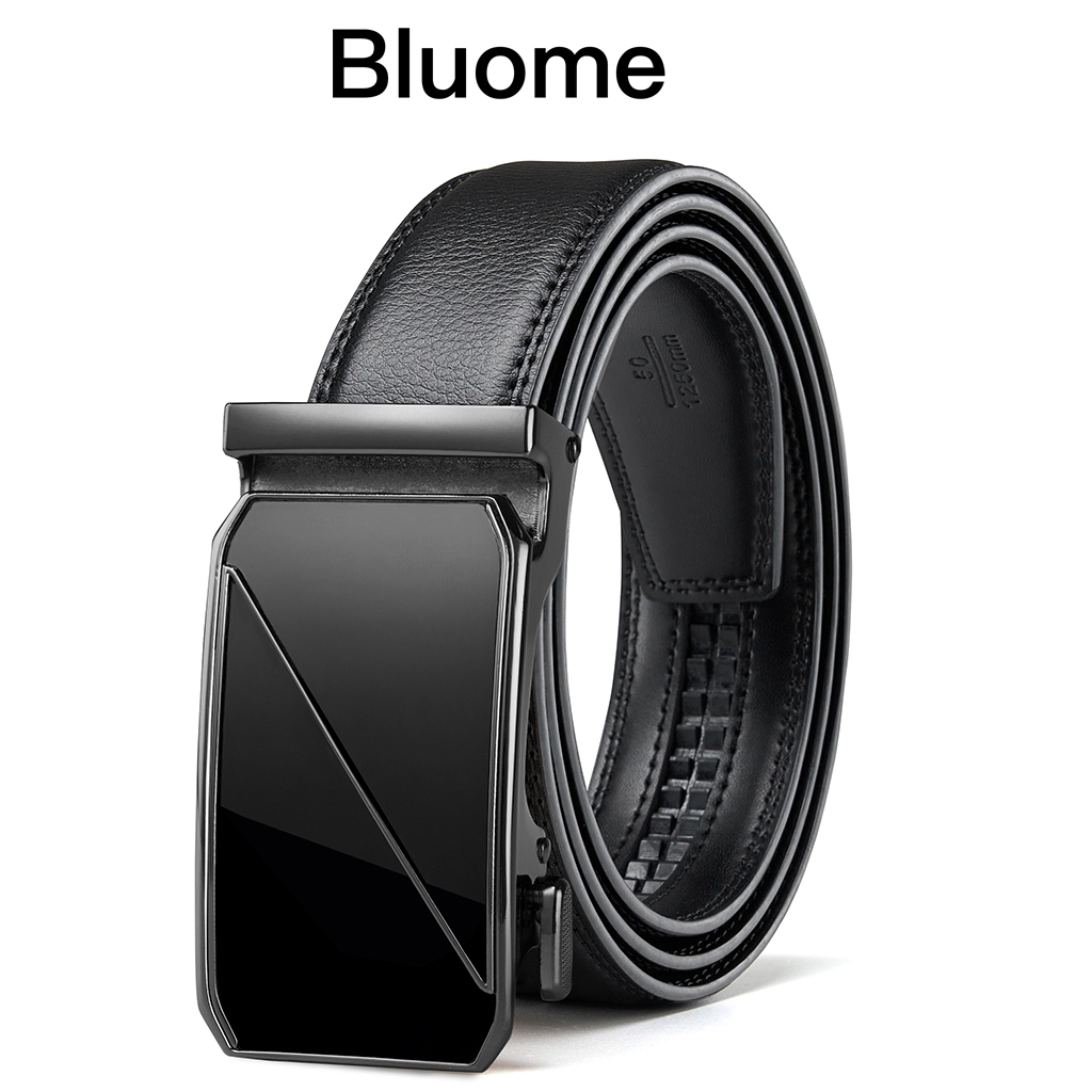 Bluome Sabuk Pria Keren Ikat Pinggang Pria Kulit Asli Ban Gesper Otomatis Rel Belt Dapat Disesuaikan