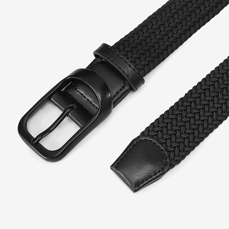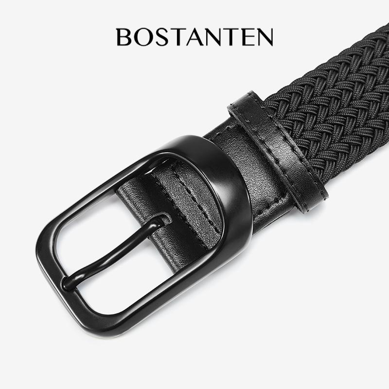 BOSTANTEN Sabuk Ikat Pinggang Pria Modis Sederhana Trendi Peregangan Jalinan Tanpa Lubang Hitam