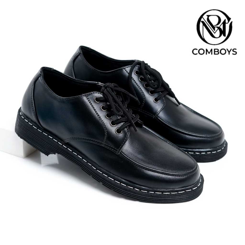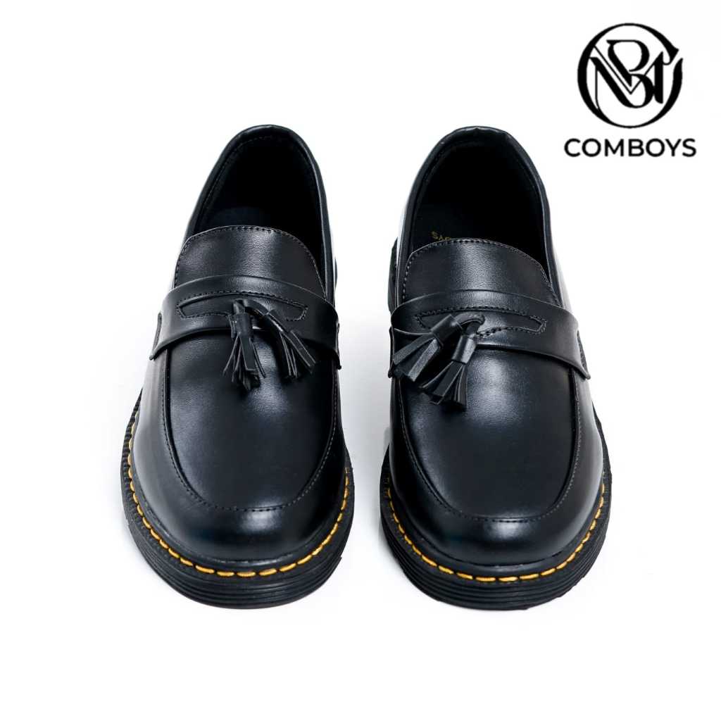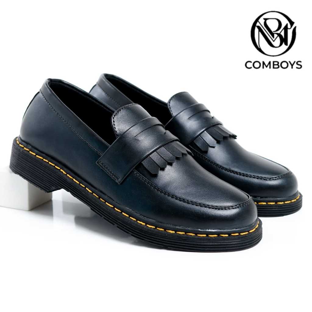 Sepatu Pria Formal Loafers Docmart Comboys Black Kulit Pu Pantofel Kerja Kantoran 01
