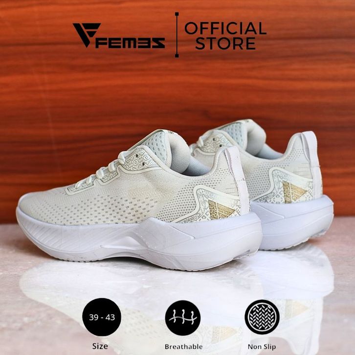 Femez Borneo 1.0 Sepatu Olahraga Running Full Putih Sekolah Pria Wanita Gym Zumba Olahraga Lari