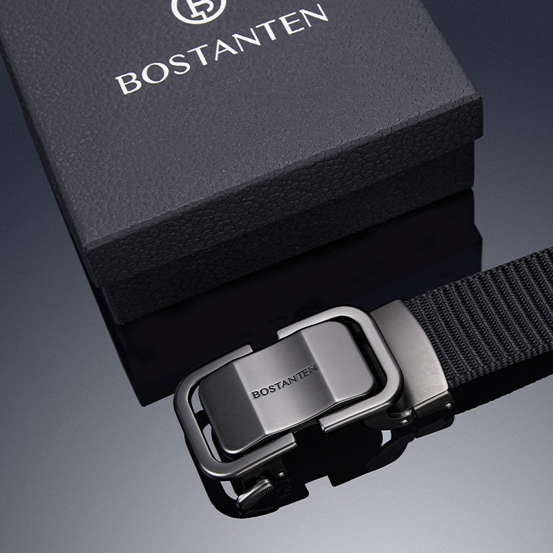 [New Arrival]Bostanten Sabuk Pria Ikat Pinggang Unisex Nylon Canvas Alloy Belt Gesper Pria Hitam/Abu-abu