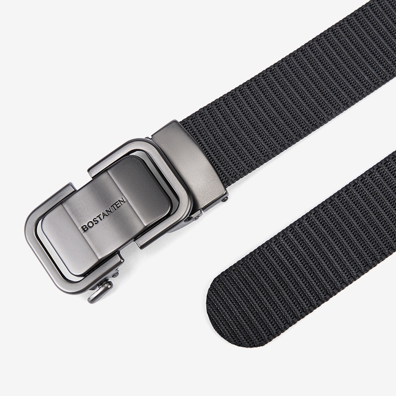 [New Arrival]Bostanten Sabuk Pria Ikat Pinggang Unisex Nylon Canvas Alloy Belt Gesper Pria Hitam/Abu-abu