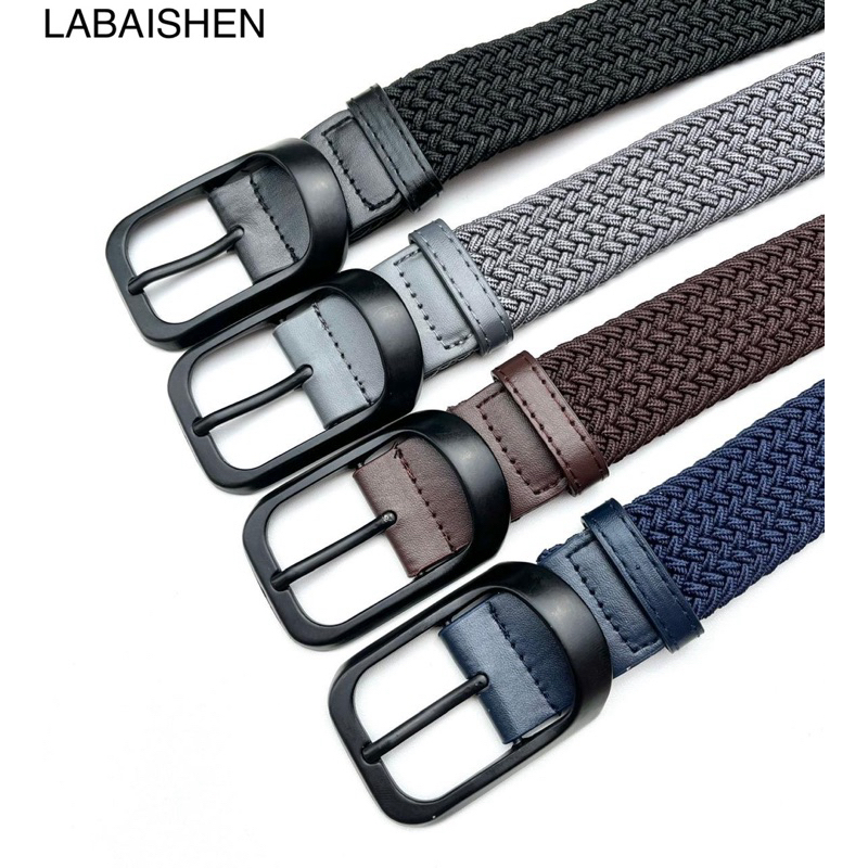 Labaishen Sabuk Ikat Pinggang Pria Modis Simple Ikat Pinggang Jalin Elastis