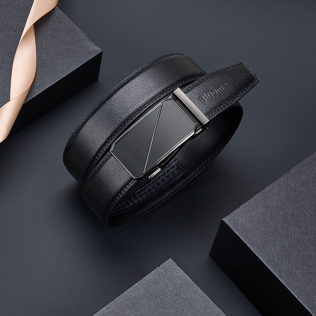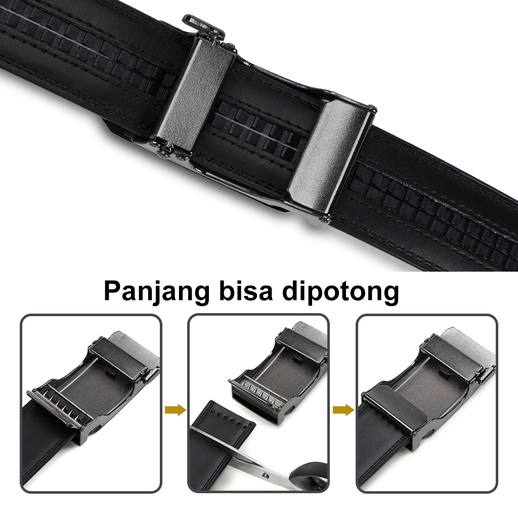 Bluome Sabuk Pria Keren Ikat Pinggang Pria Kulit Asli Ban Gesper Otomatis Rel Belt Dapat Disesuaikan