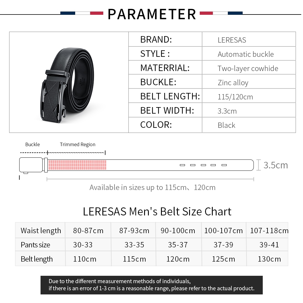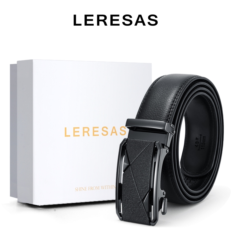 LERESAS Sabuk Pinggang Gesper Otomatis Ikat Pinggang Pria Kulit Sapi Asli Dapat Disesuaikan Belt Pria P011