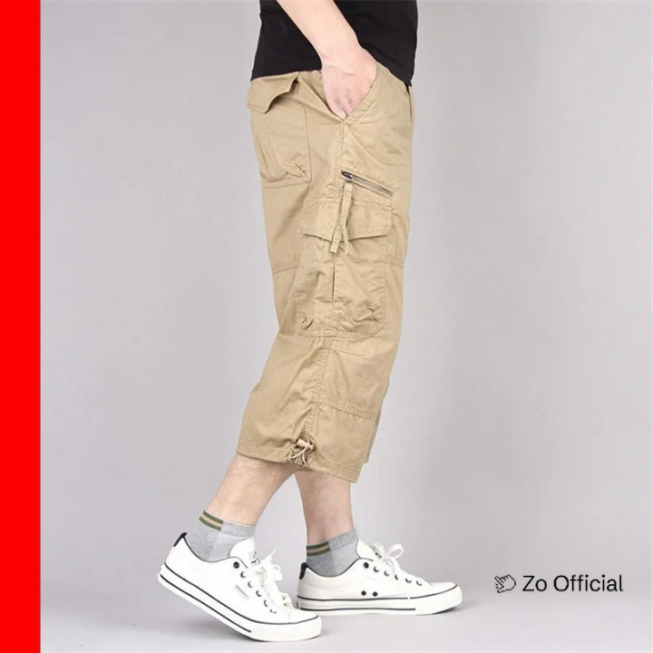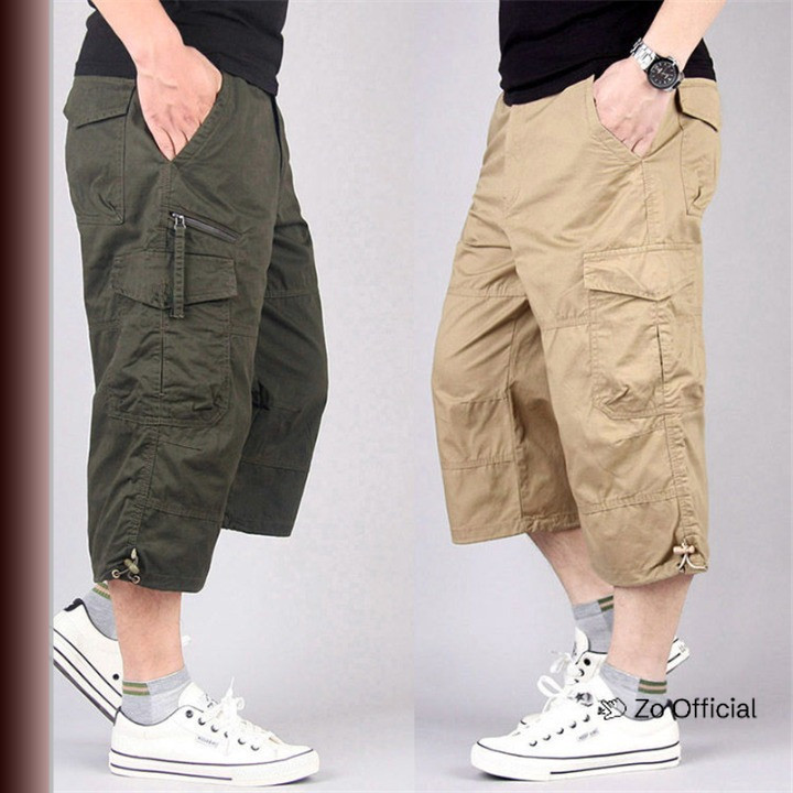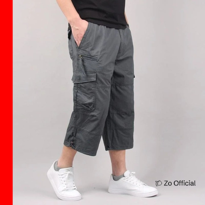 Garvelo Belerizza Celana Pendek Pria Kargo Sirwal 3/4 Di Bawah Lutut Bahan Katun