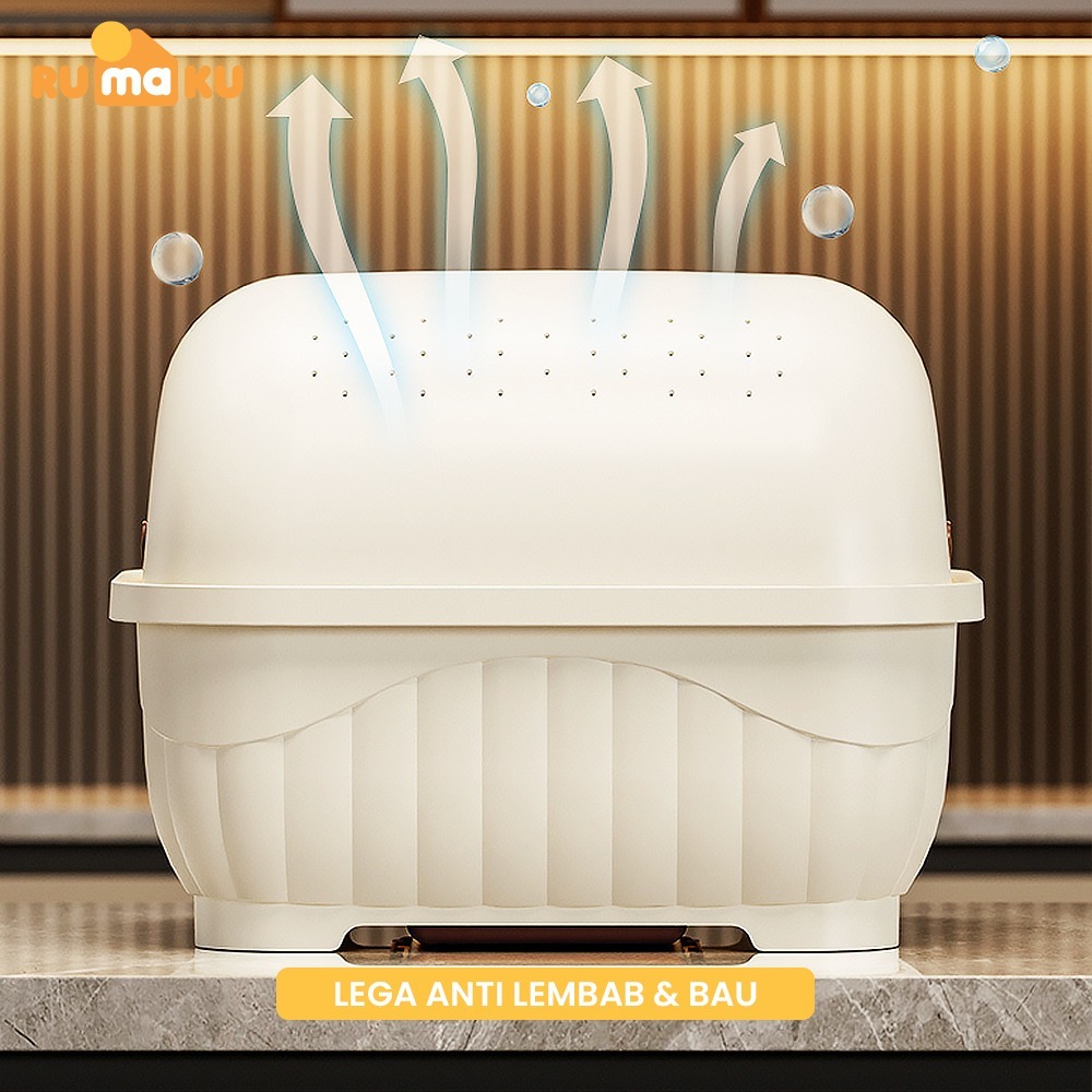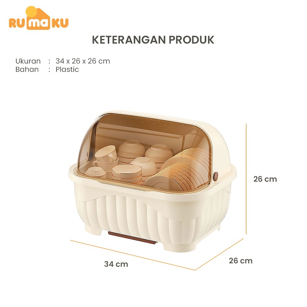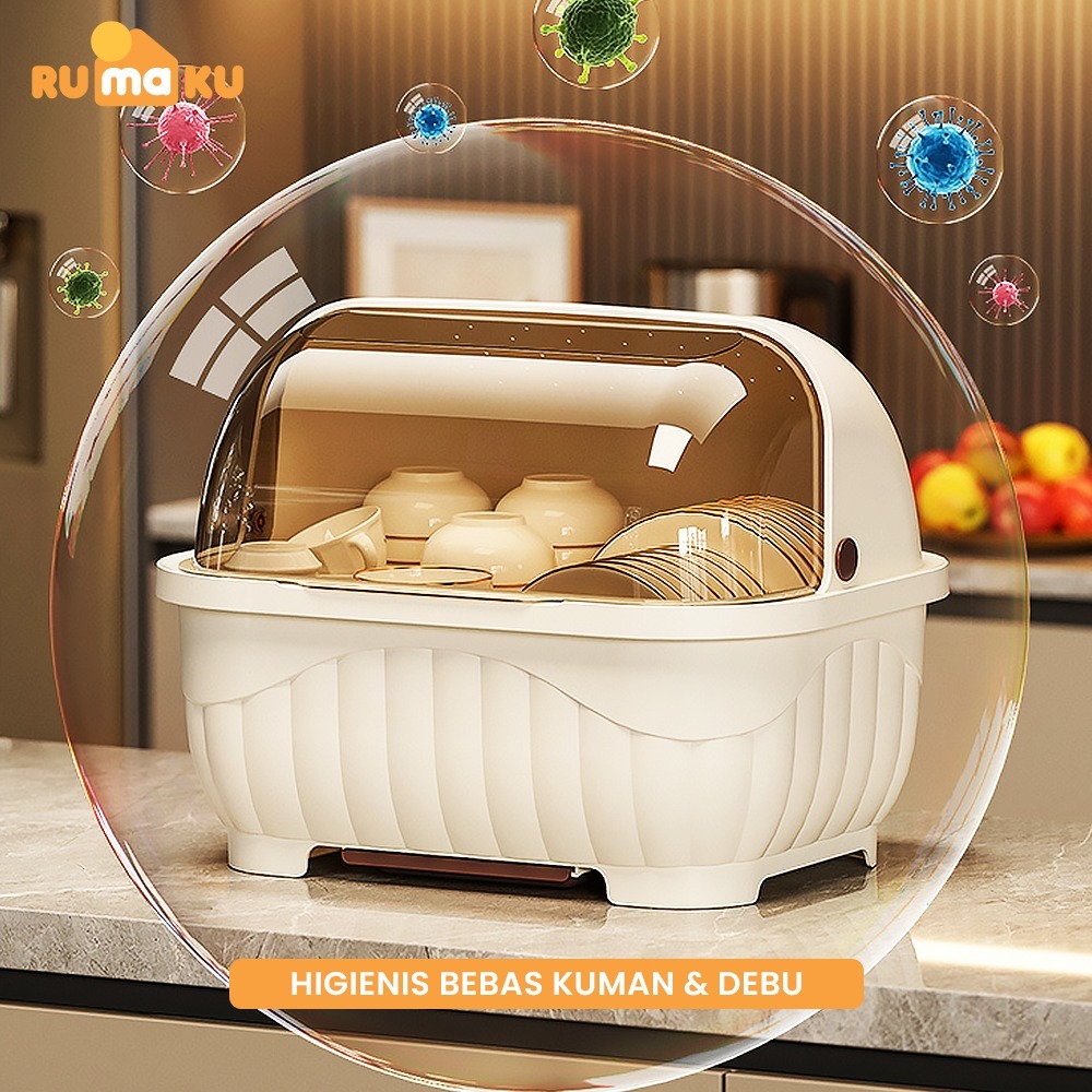 Rumaku Rak Piring Plastik Dengan Tirisan Air Dan Tutup Transparan Tempat Penyimpanan Mangkuk Garpu Sumpit Anti Debu