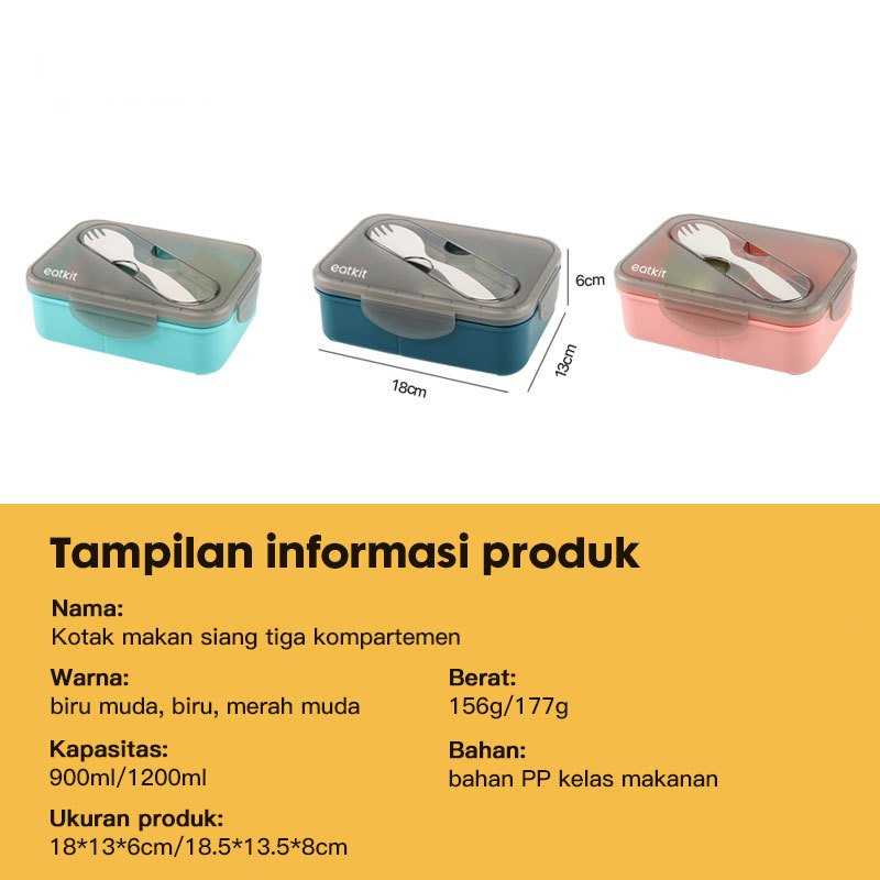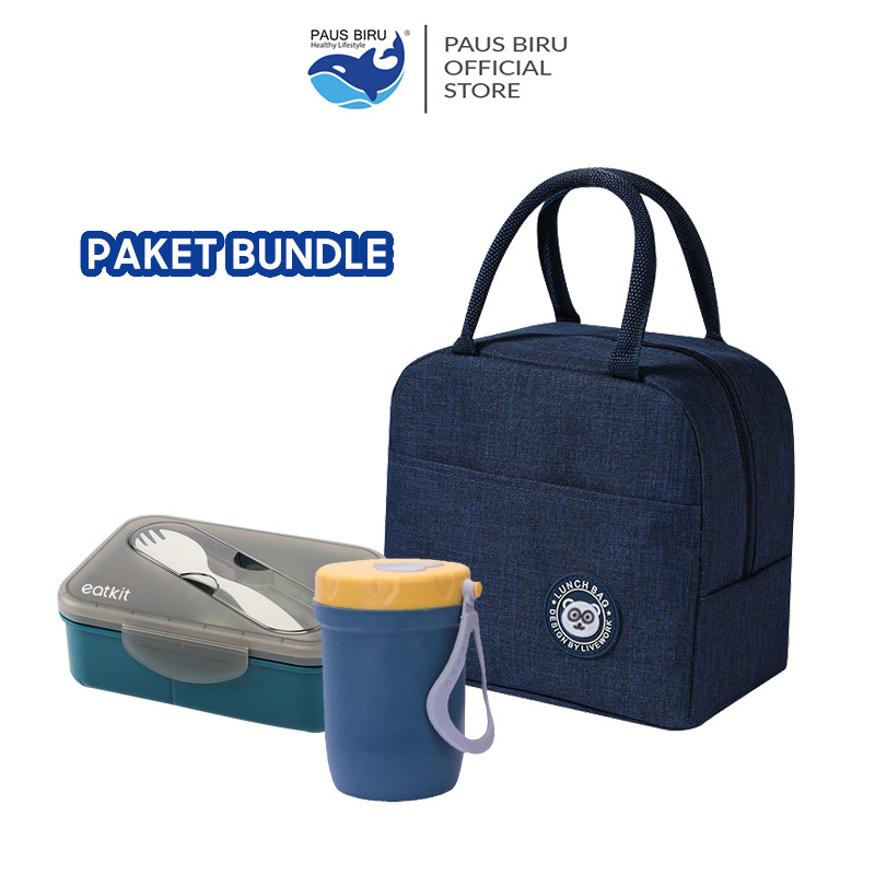 Paus Biru - 3in1 Set Lunch Box Kotak Makan 900ml Tas Bekal Tempat Soup Kuah Wheatstraw Anti Panas