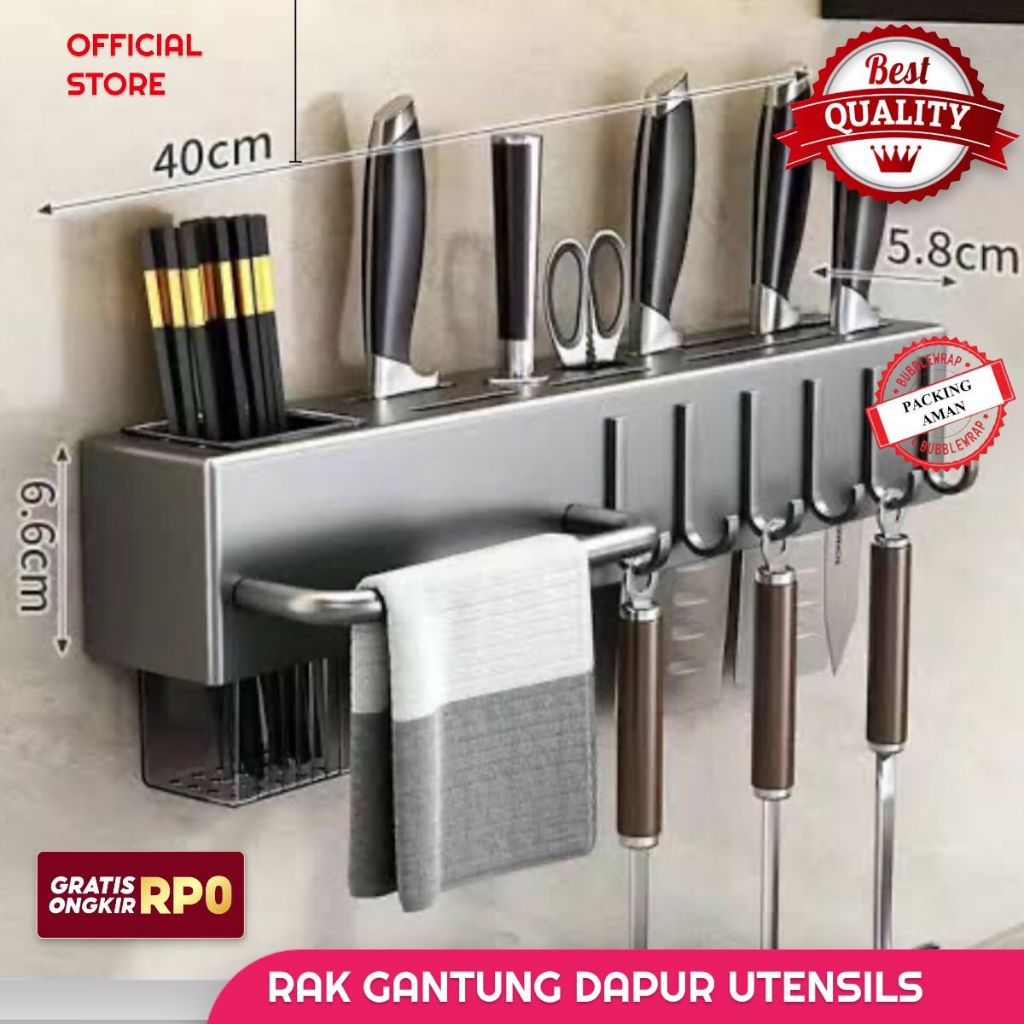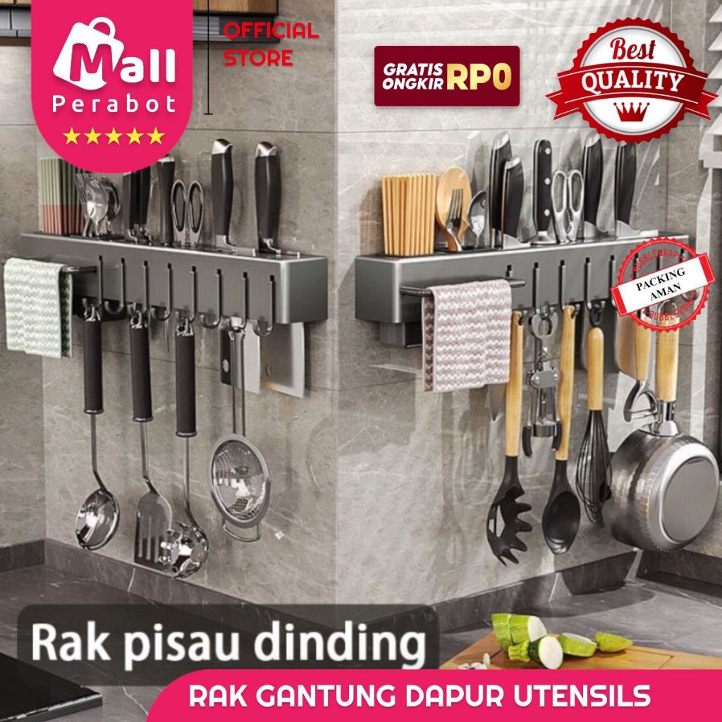 Mall Perabot Tomo | Rak Pisau Dinding Dapur Stainless Steel Tempat Taruh Sendok Garpu Gantungan Lap Dapur | Rak Tem