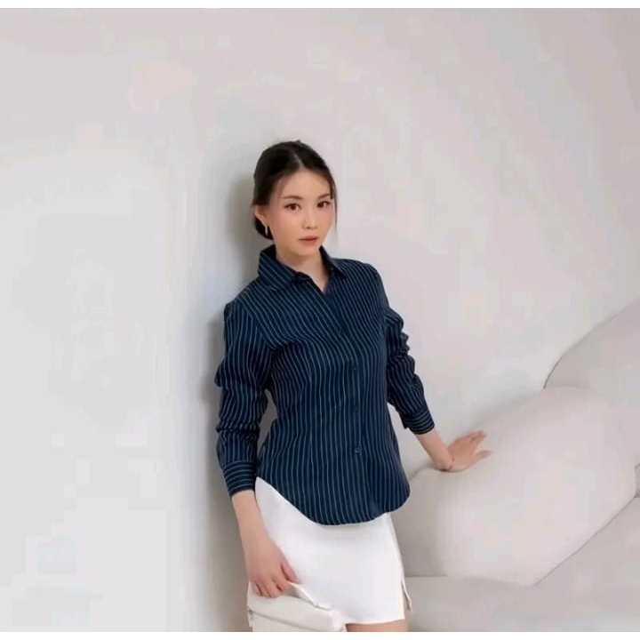 Kemeja Wanita Lengan Panjang Slim Fit Strip Salur