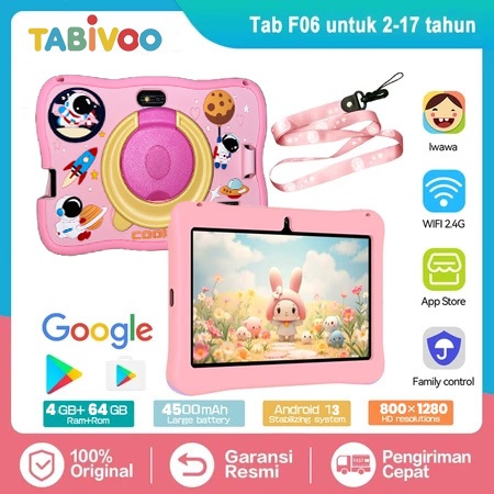 TABIVOO Tablet Anak Anti Radiasi Android 13 RAM 4/64GB Layar 7 Inch Belajar Bermain Edukasi Mengaji
