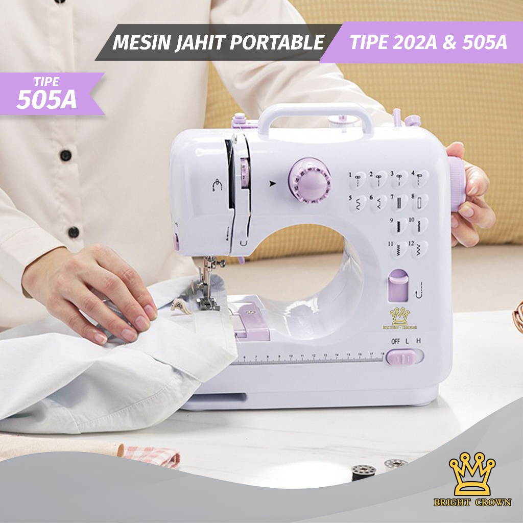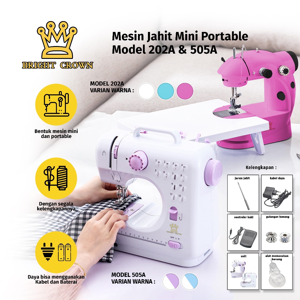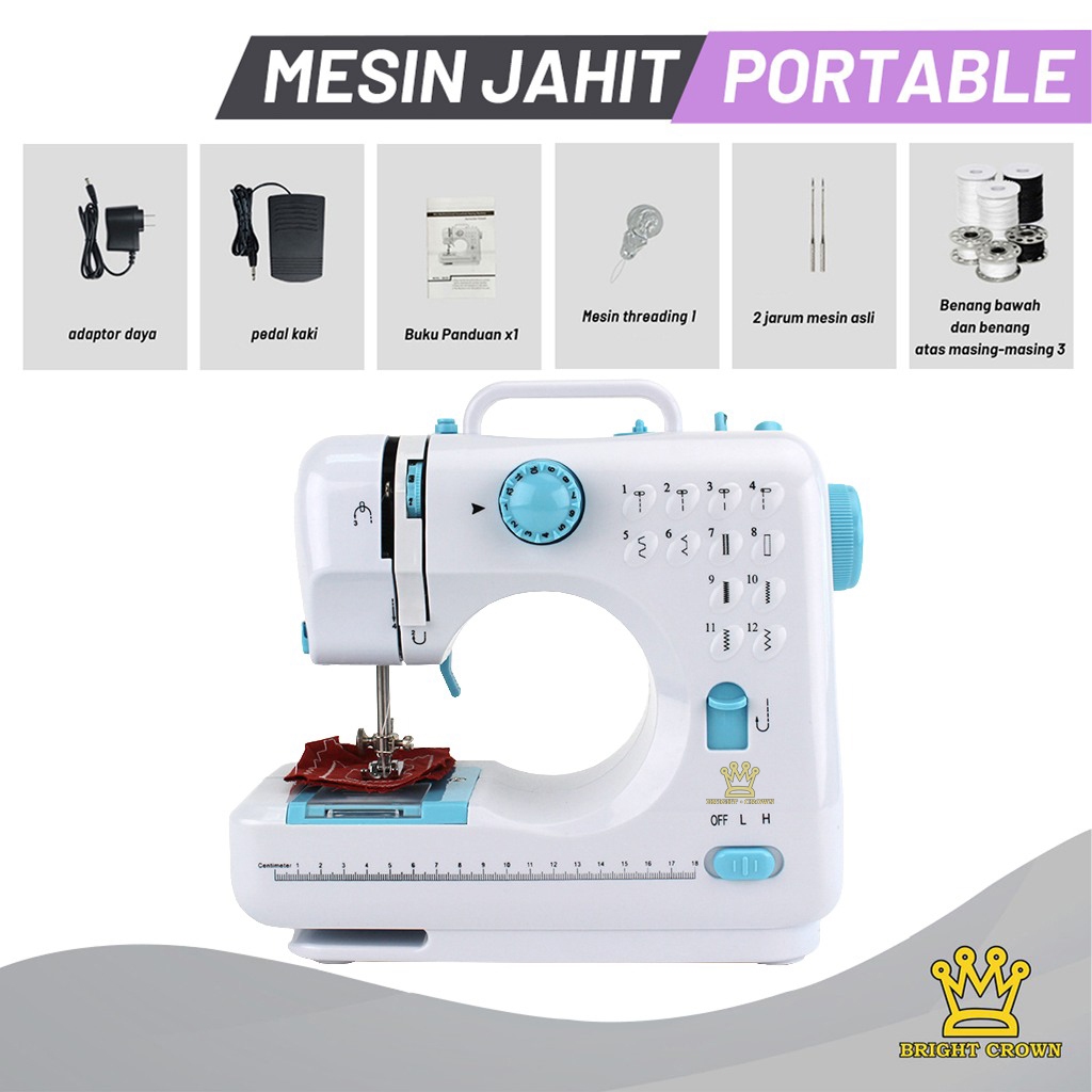 Bright Crown Mesin Jahit Mini Portable 505A 12 Jenis Pola Jahitan + 202A Mesin Jahit + Lampu Malam