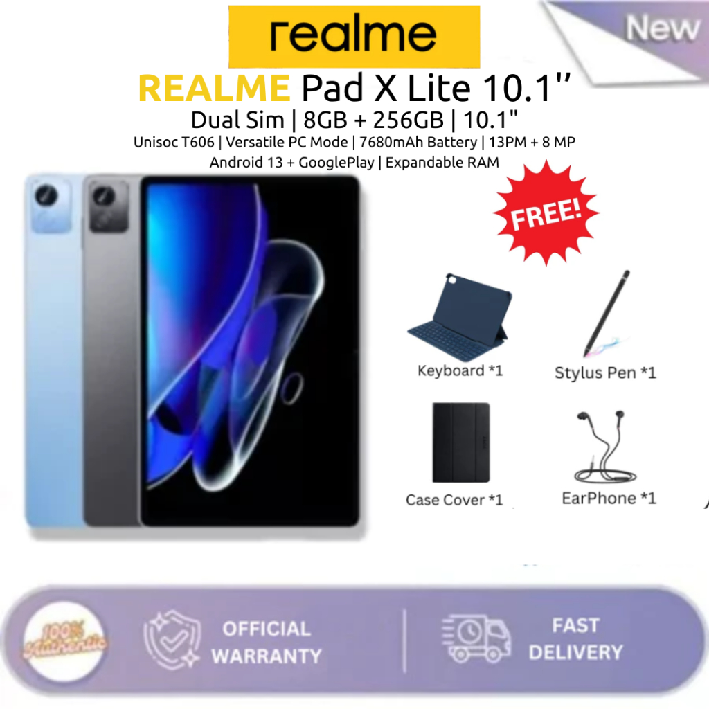 REALME Pad X Lite 10.1” | 8+256GB | Gratis Stylus + Keyboard | Bisa Canva Excel