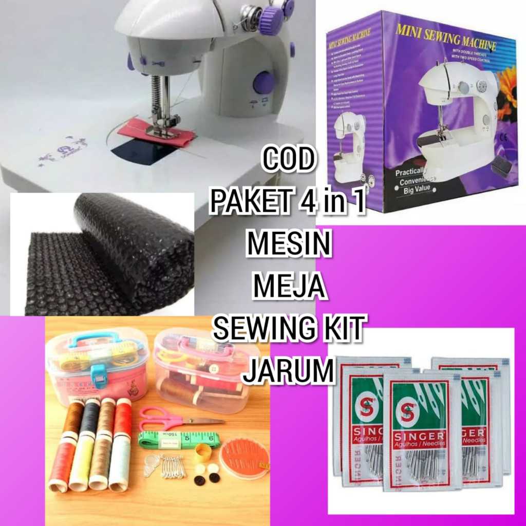 PAKET 5IN1 MESIN JAHIT KOMPLIT FREE MEJA SEWING KIT JARUM 1PACK MESIN JAHIT PORTABLE 202 DENGAN BUBLE WRAP