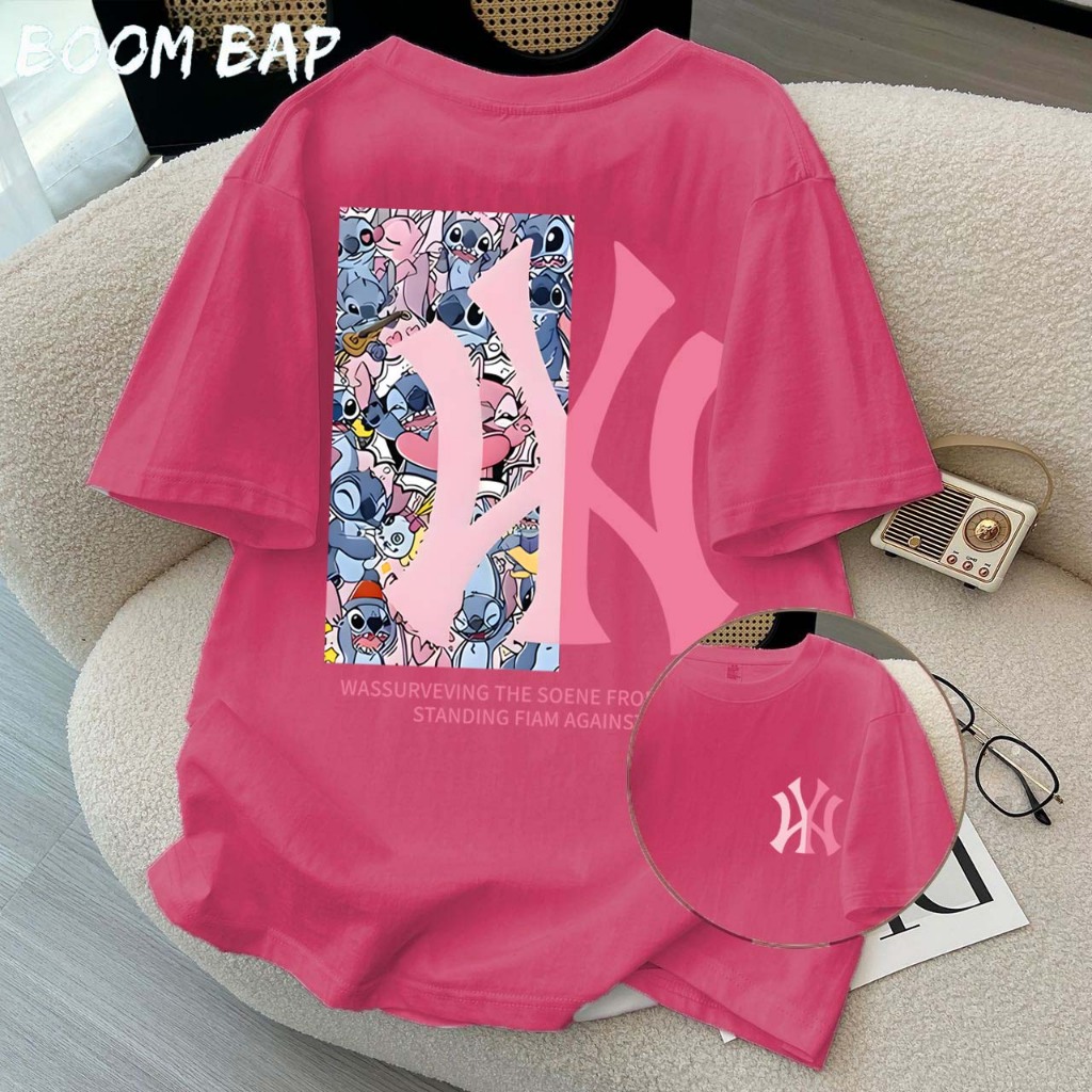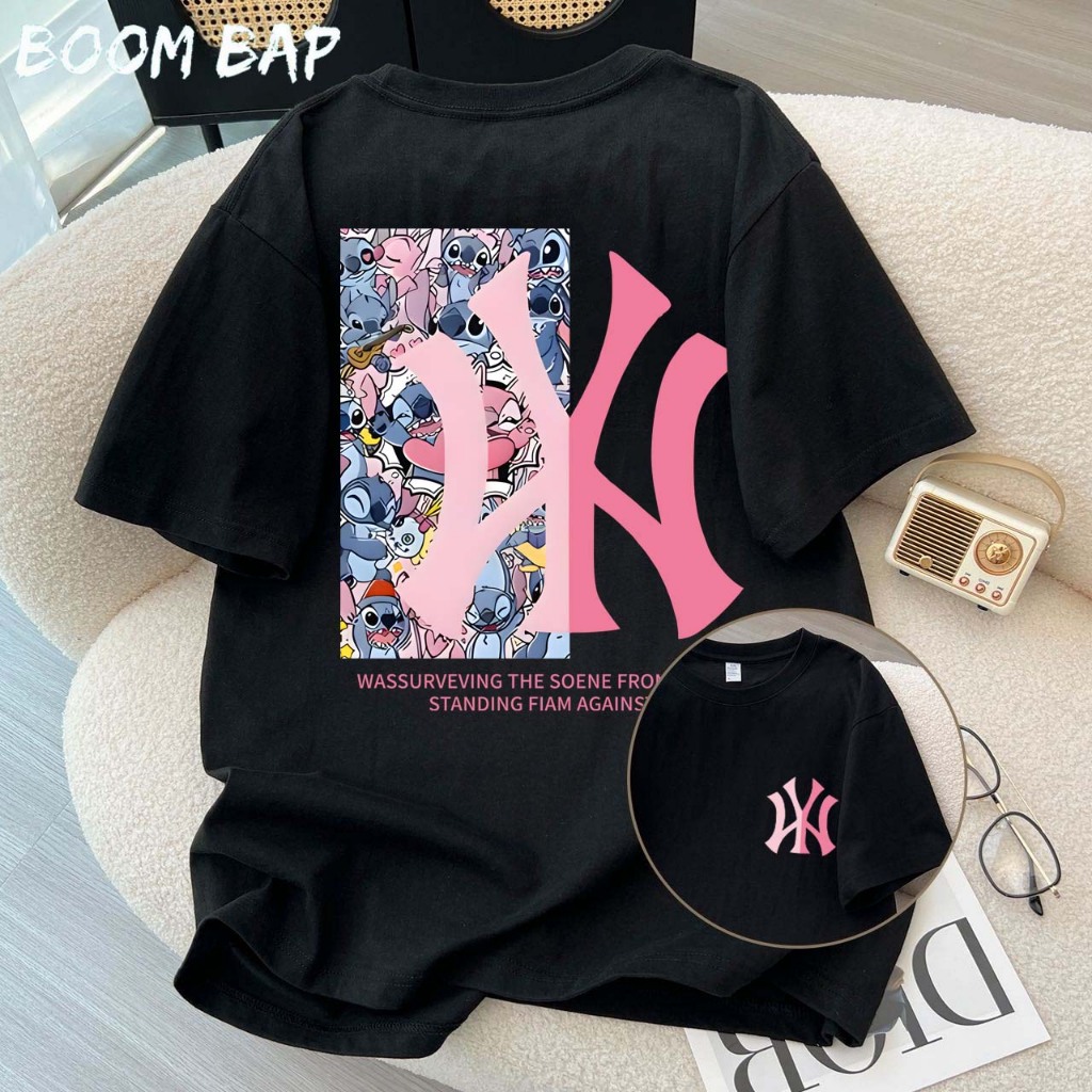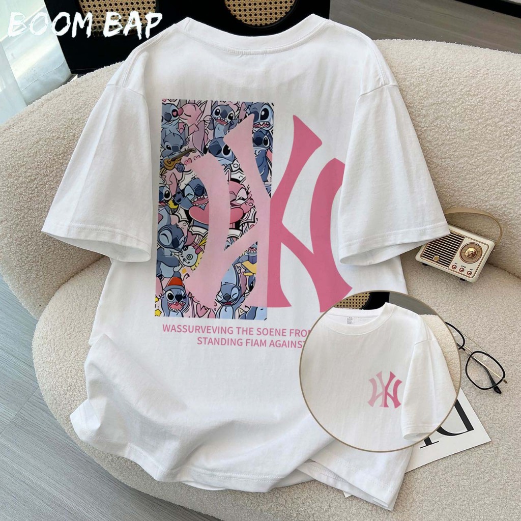 BOOMBAP American retro Style T-shirt Oversize MLB&Stitch join Print top| Kaos Wanita Putih | Kaos pria dan wanita |
