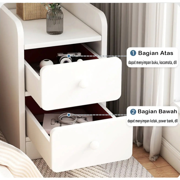 Meja Nakas Meja Samping Kamar Tidur Bedside Table Mini Meja Nakas Kayu Lemari Laci Penyimpanan O2A1