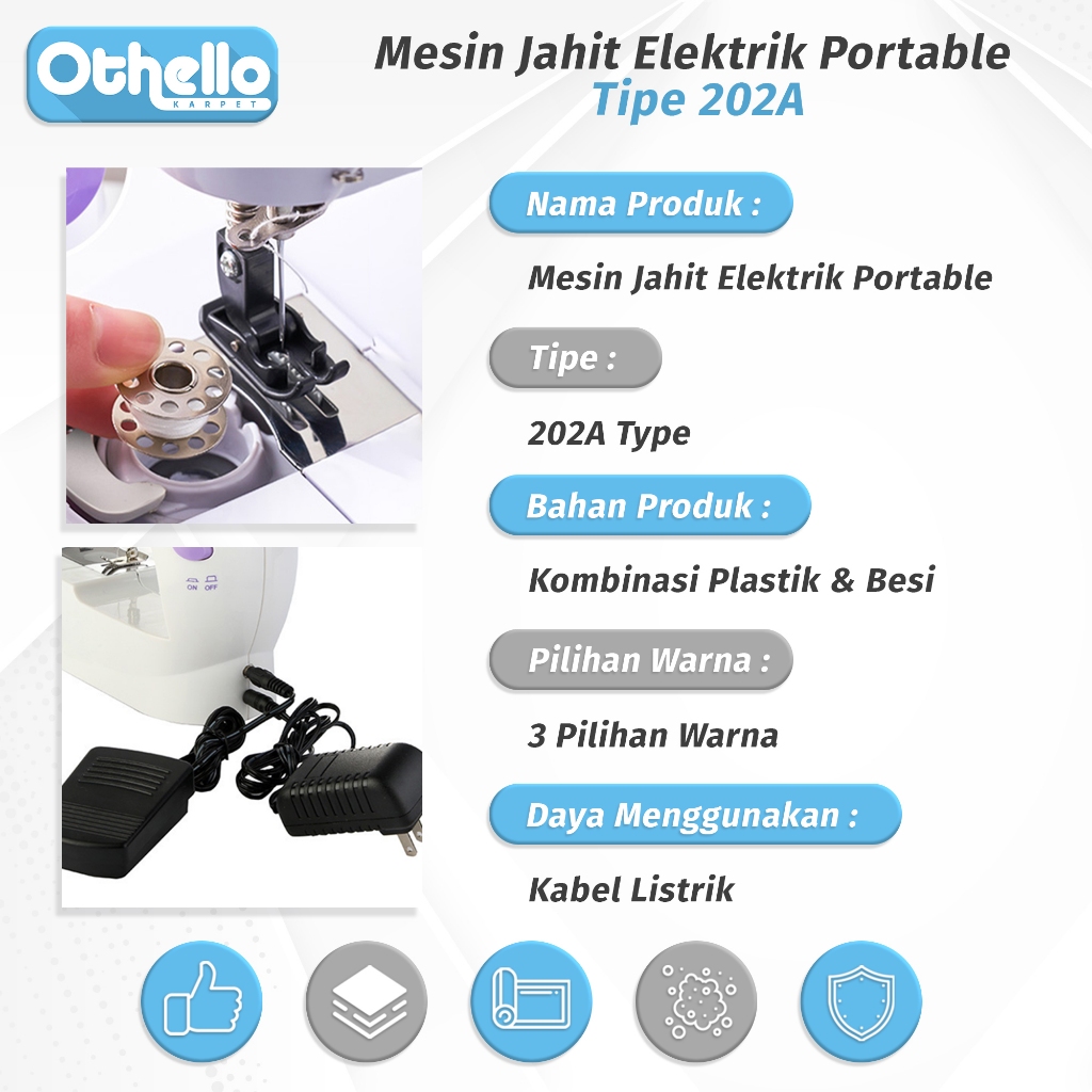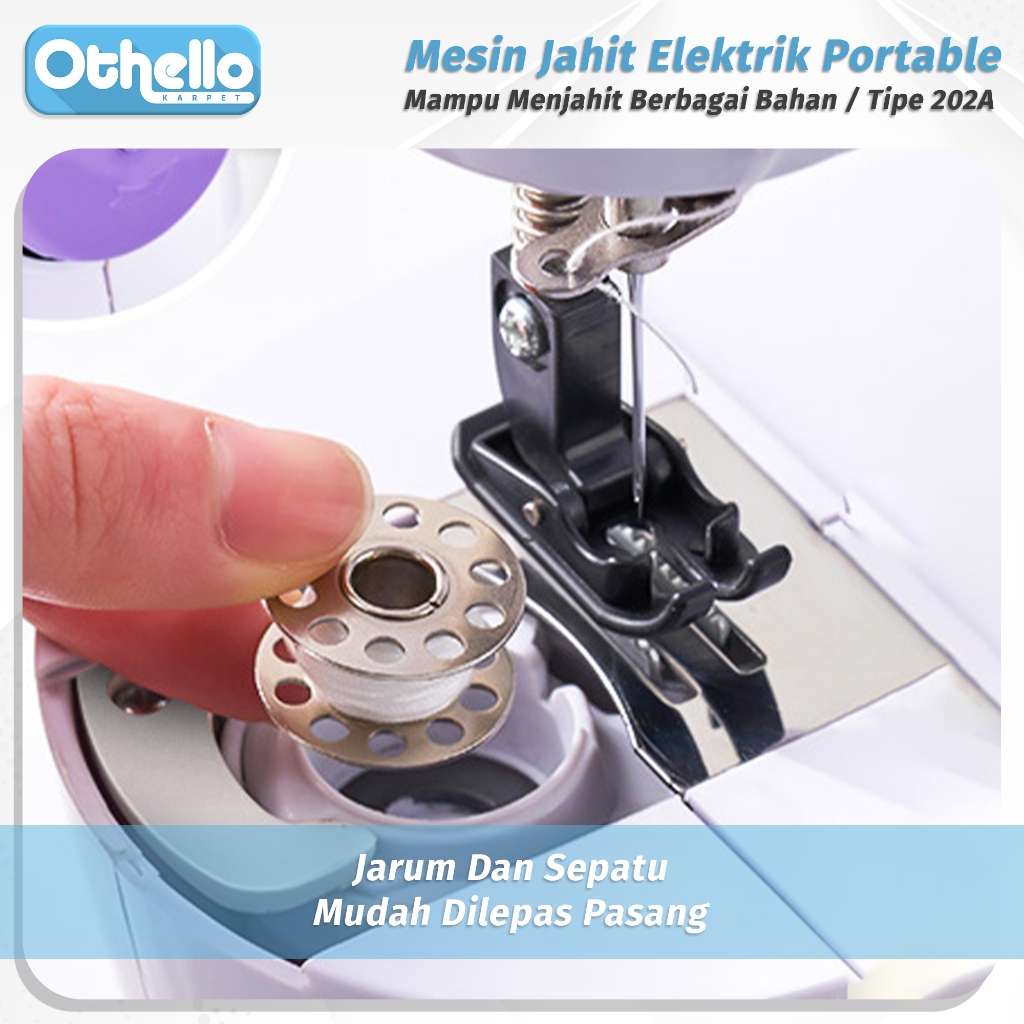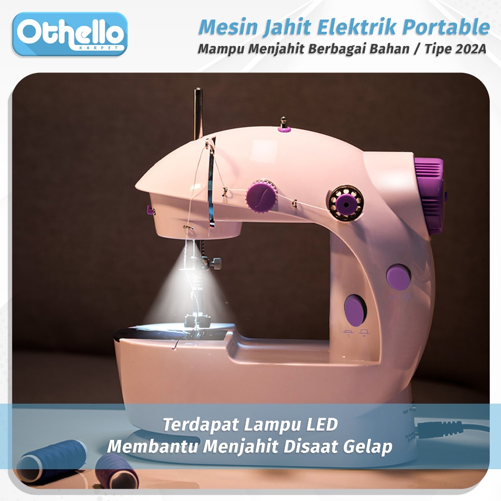 [Othello] Mesin Jahit Portable 202A Mini Praktis Multifungsi Serbaguna Menjait Baju Kain + Lampu LED