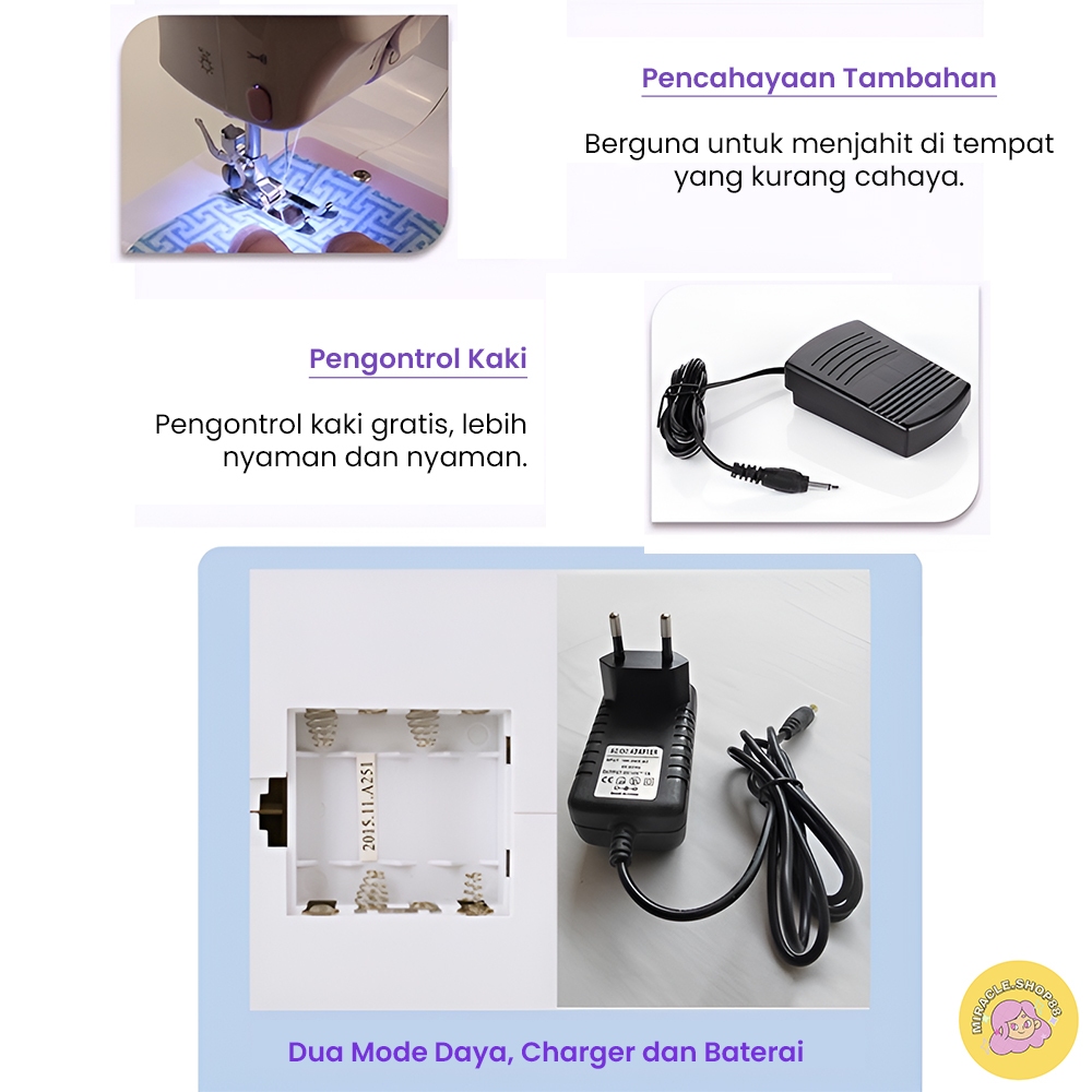 MS Mesin Jahit 505A Dengan 12 Pola Jahitan Pakaian Dengan Listrik/Baterai