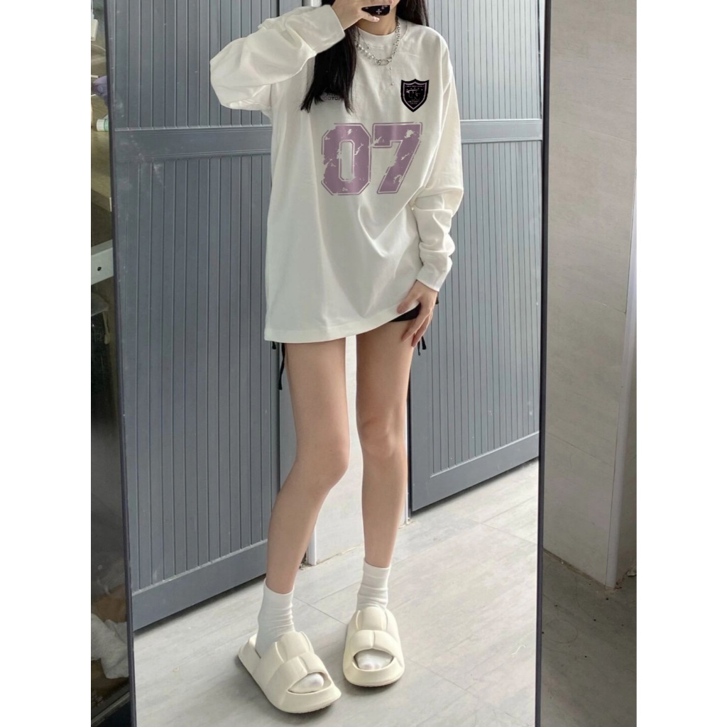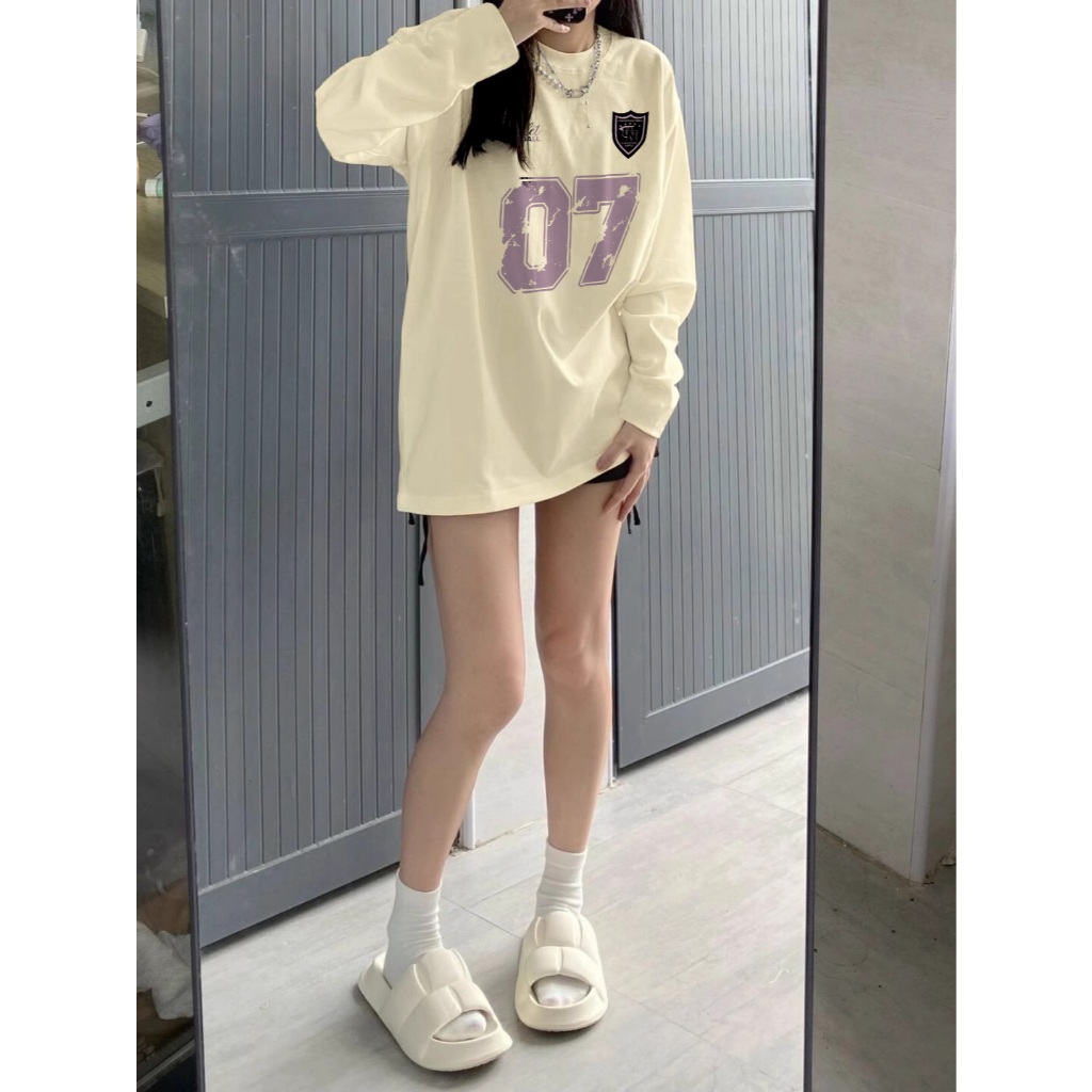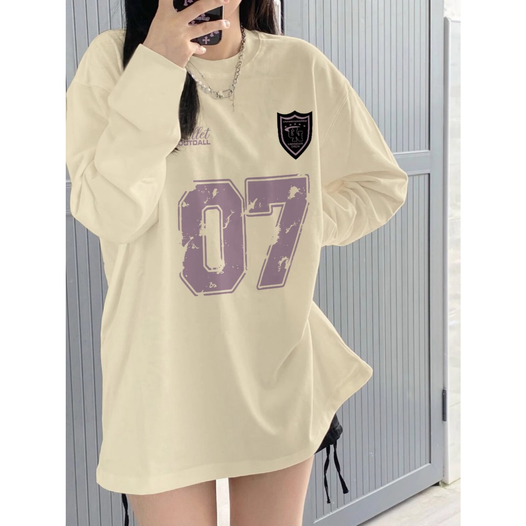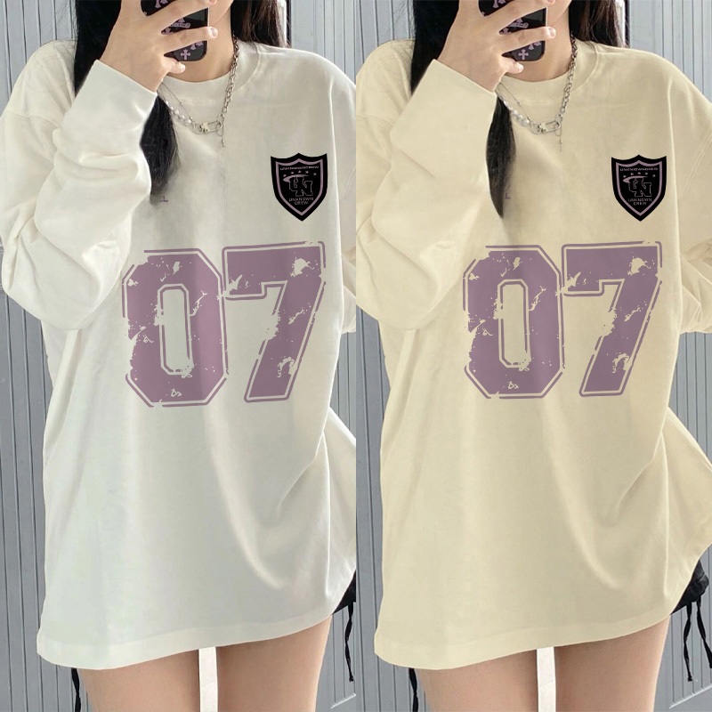 Kaos Oversize Lengan Panjang Wanita Cetakan Pink number 07/Baju Kaos Lengan Panjang Wanita Terbaru Kekinian Baju Ka