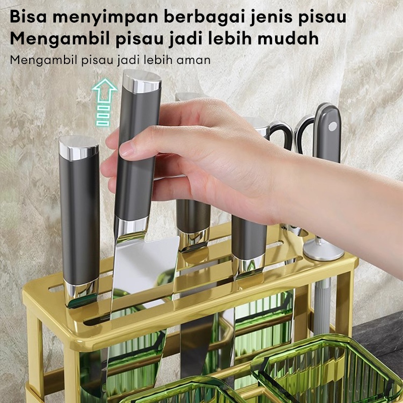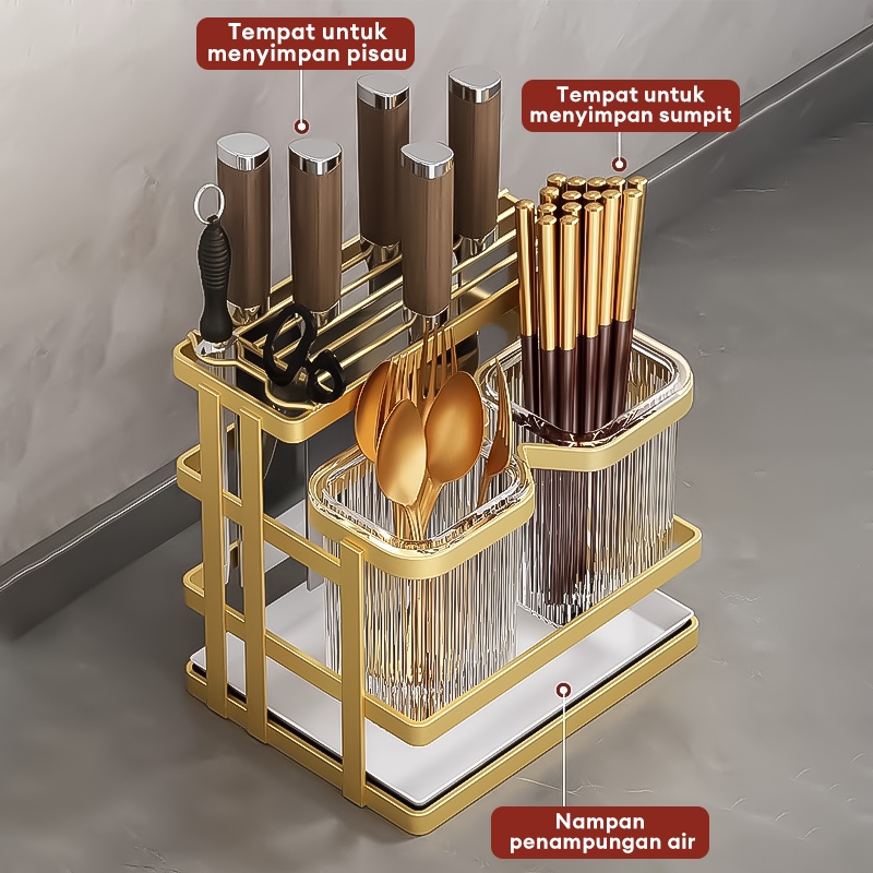 Rak Dapur Stainless Steel Tempat Sumpit Dapur Tempat sendok estetik Tempat pisau dapur Rak Penyimpanan dapur Serbag