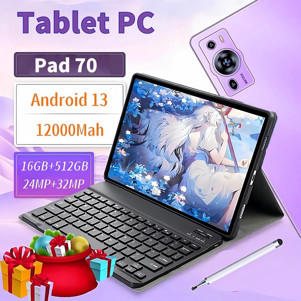 【】Tablet Android Pad70 12.0 Inch, RAM 16GB + 1024GB ROM, 5G Dual SIM, Wifi, Tablet PC untuk Belajar & Hiburan&kanto