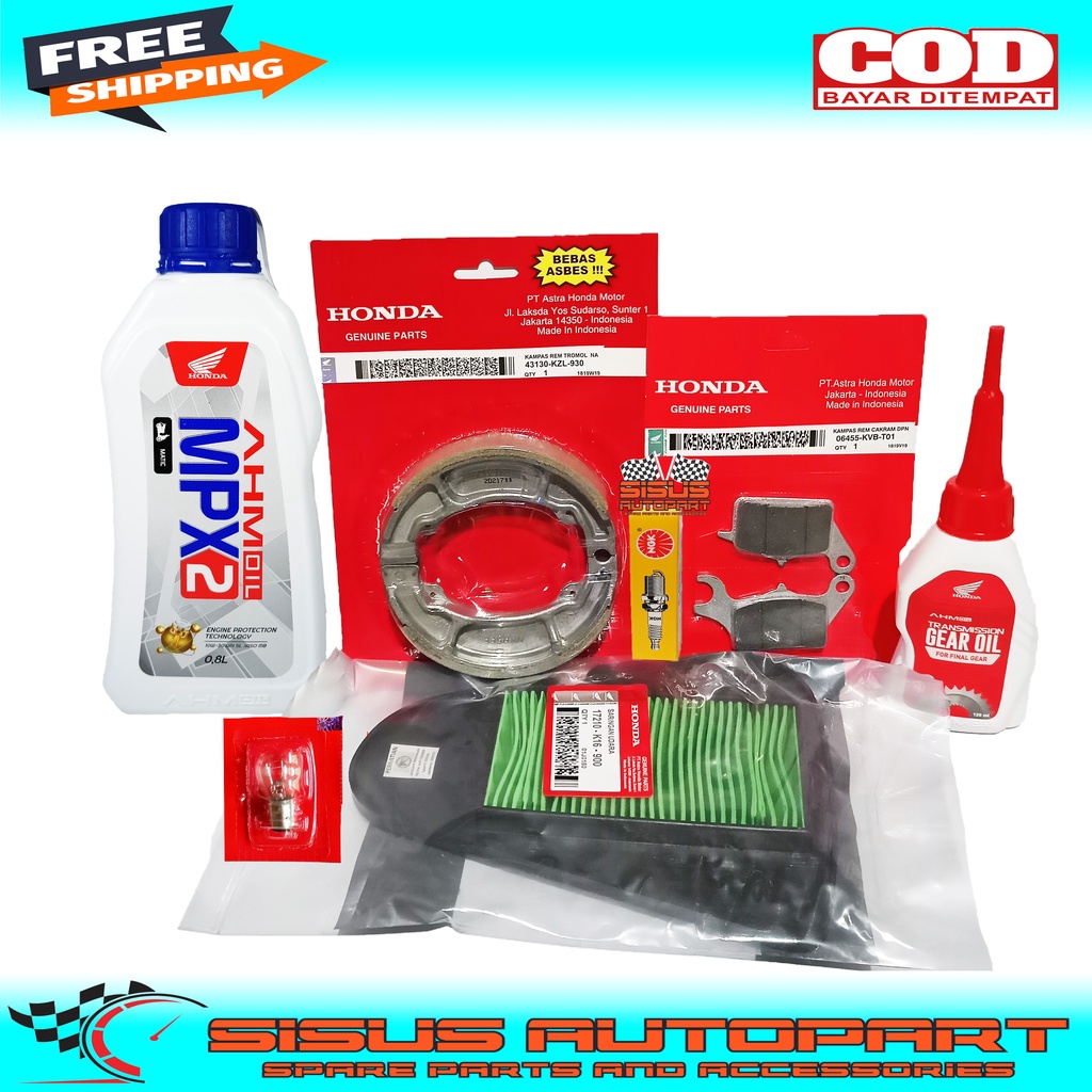 PAKET SERVICE BEAT FI SCOOPY FI BEAT ESP VARIO 110 FI / PAKET KAMPAS REM DEPAN BELAKANG OLI MPX2 OLI GARDAN BUSI BO