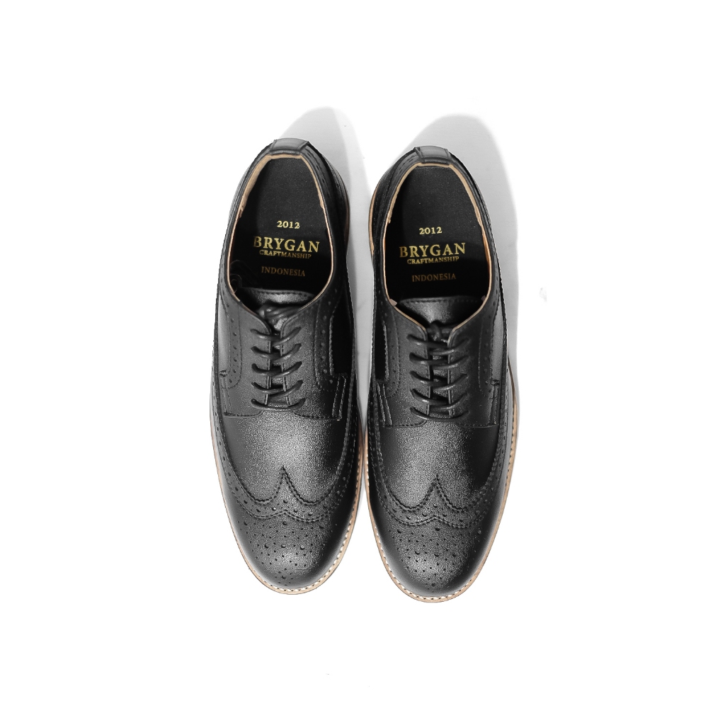 Sepatu Formal Pria Oxford Sanada Longwing Hitam - Brygan Craftmanship - Sepatu Kerja Sepatu Kantor Sepatu Kondangan