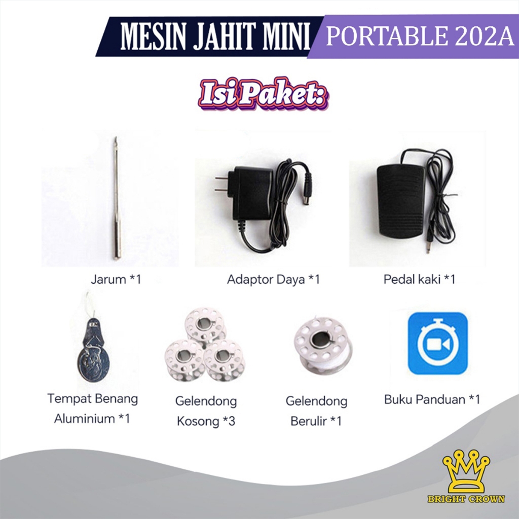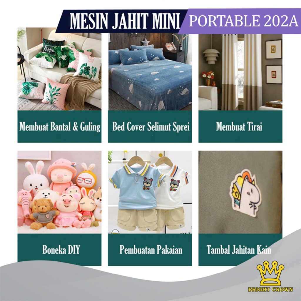 Bright Crown Terbaru Mesin Jahit Mini Portable 202A Mesin Jahit Multifungsi + Lampu Malam Rapi&Kokoh