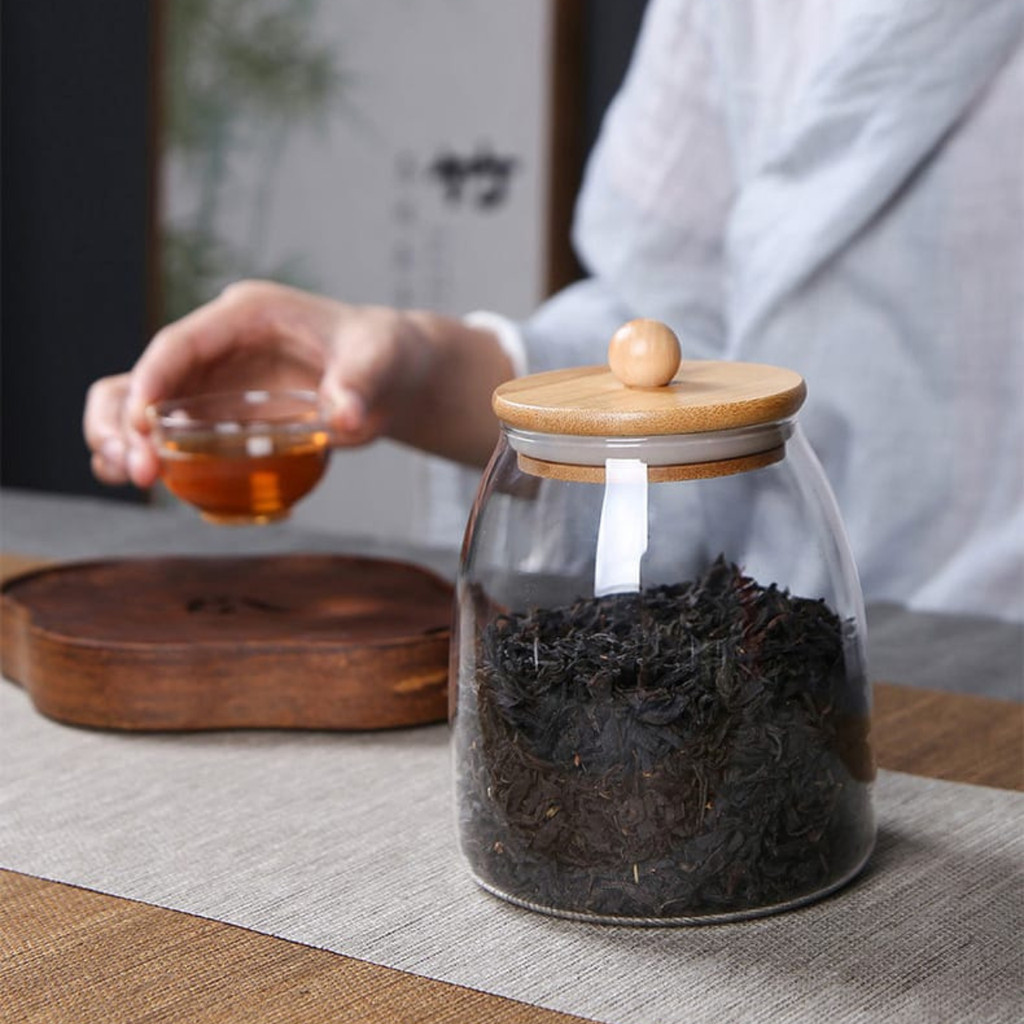 Toples Kayaru Kaca Kedap Dengan Tutup Pegangan Bulat Bambu