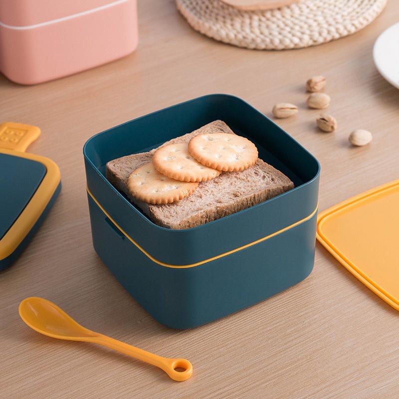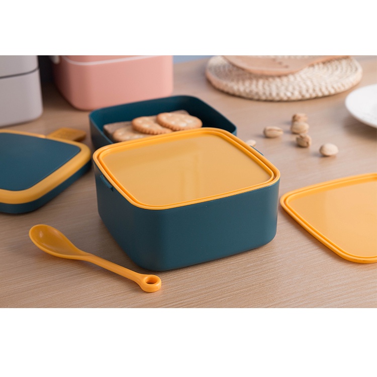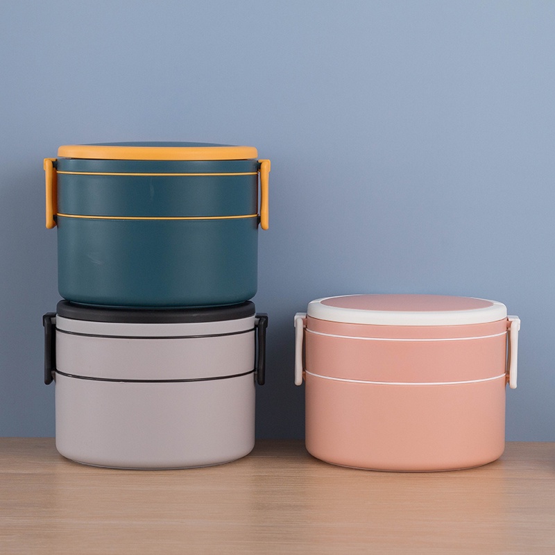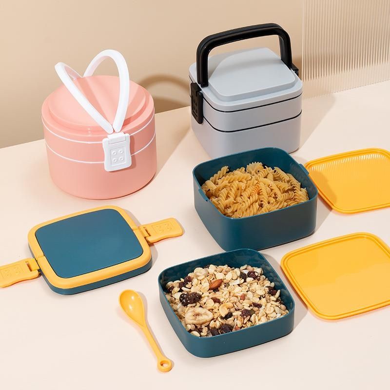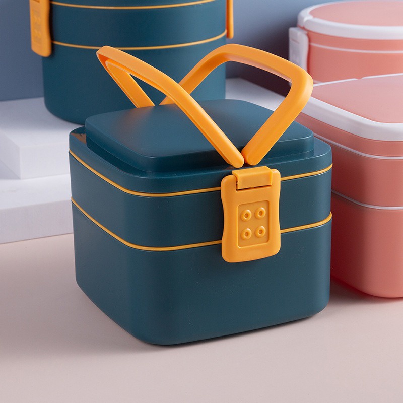 Kotak Makan 2 Tingkat Lunch Box Susun Material Plastik Food Grade Tempat Bekal Makan Double Layer Rantang 2 Tingkat